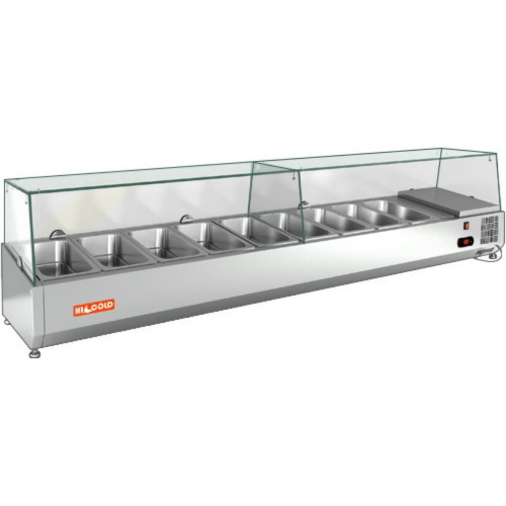 Каталог оборудования Холодильное оборудованиеВитрины для ингредиентовВитрина холодильная для ингредиентов HICOLD VRTG 1915 к PZ4 (1/4) Витрина холодильная для ингредиентов HICOLD VRTG 1915 к PZ4 (1/4) Код товара: 064-662 Поделиться: WhatsAppTelegram СравнитьДобавить в КПВ избранное 0 68 518 ₽ В корзину 0 шт Под заказСамовывоз сегодня бесплатно Взять в кредит Купить в лизинг Получить консультацию в WhatsApp Описание Характеристики Отзывы 0 Инструкции 3 Витрина холодильная для ингредиентов HICOLD VRTG 1915 к PZ4 (1/4) предназначена для охлаждения, кратковременного хранения и демонстрации ингредиентов, салатов и готовых блюд на предприятиях общественного питания и торговли. Устанавливается на холодильные столы для пиццы серии PZ4 благодаря встроенным креплениям в нижней части корпуса. На фото показана аналогичная модель с настольной установкой. Ключевые особенности: Корпус из нержавеющей стали — долговечность, простота ухода. Электронная панель управления — точная регулировка температуры. Исполнение G — стеклянная надстройка для удобного обзора продуктов. Высота витрины — 459 мм — компактное размещение на рабочей поверхности. Вместимость: 9xGN1/4 — рациональная организация хранения (гастроёмкости приобретаются отдельно). Совместимые модели столов: PZ4-11/GN HICOLD VRTG 1915 к PZ4 (1/4) — это профессиональная настольная витрина, которая сочетает компактные размеры, современное управление и высокое качество охлаждения. Отличный выбор для пиццерий, ресторанов и кафе, где важны удобство доступа, скорость работы и эффектная подача продуктов.Изображение товара, представленного на фото, может отличаться от его фактического вида. Показать все Габаритные размеры1915×325×459 ммДиапазон рабочей температурыот +2 до +7 °CДлина1915 ммГлубина325 ммВысота459 ммТип крышкиСтеклянная Гастроемкостей9 штТип гастроемкостейGN 1/4 Мощность150 ВтНапряжение220 ВТип охлажденияСтатическое Материал изготовленияНержавеющая сталь ХладагентR134 Мощность0,15 кВтВес нетто56 кгВес брутто100 кгТип оттайкиРучная Габариты в упаковке2015×485×559 ммБрендHicold Оставить отзыв Еще никто не оставил отзыв на этот товар Инструкция на HICOLD VRTG 1915 к PZ4.pdfСхема установки на стол.jpgДекларация о соответствии.pdf Похожие товары Перейти в каталог Под заказ 101 613 ₽ Витрина холодильная для ингредиентов TEFCOLD VK33-180 С этим товаром покупают В наличии 97 310 ₽ Стол морозильный низкотемпературный Polair TB2GN-GC В наличии 26 519 ₽ Льдогенератор Cooleq ZB-15B (пальчики) В наличии 68 097 ₽ Шкаф холодильный Polair СМ 105-S Ранее просмотрено Под заказ 69 274 ₽ Витрина холодильная для ингредиентов HICOLD VRTG 1970 к PZ3 (1/4)