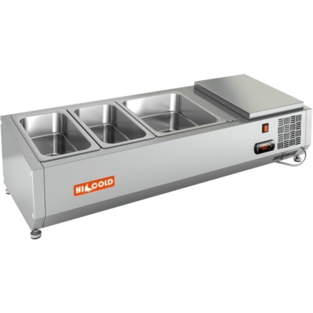 Каталог оборудования Холодильное оборудованиеВитрины для ингредиентовВитрина холодильная для ингредиентов HICOLD VRTO 1000 к PZE3 (1/3) Витрина холодильная для ингредиентов HICOLD VRTO 1000 к PZE3 (1/3) Код товара: 064-673 Поделиться: WhatsAppTelegram СравнитьДобавить в КПВ избранное 0 44 649 ₽ В корзину 0 шт Под заказСамовывоз сегодня бесплатно Взять в кредит Купить в лизинг Получить консультацию в WhatsApp Описание Характеристики Отзывы 0 Инструкции 2 Витрина холодильная для ингредиентов HICOLD VRTO 1000 к PZE3 (1/3) предназначена для охлаждения, кратковременного хранения и демонстрации ингредиентов, салатов и готовых блюд на предприятиях общественного питания и торговли. Устанавливается на холодильные столы для пиццы серии PZE3 благодаря встроенным креплениям в нижней части корпуса. На фото показана аналогичная модель с настольной установкой. Ключевые особенности: Корпус из нержавеющей стали — долговечность и лёгкость ухода. Электронная панель управления — точная настройка температуры. Исполнение O — без крышки для удобного доступа к продуктам. Высота витрины — 248 мм — компактное размещение на рабочей поверхности. Вместимость: 2 x GN1/3 + 1 x GN1/2 — рациональная организация хранения (гастроёмкости приобретаются отдельно). Совместимые модели столов: PZE3-11/GN, PZE3-11/SN HICOLD VRTO 1000 к PZE3 (1/3) — это профессиональная настольная витрина, которая сочетает компактные размеры, современное управление и удобство доступа к продуктам. Отличный выбор для пиццерий, ресторанов и кафе, где важны скорость работы и эффектная подача блюд.Изображение товара, представленного на фото, может отличаться от его фактического вида. Показать все Габаритные размеры1000×385×248 ммДиапазон рабочей температурыот +2 до +7 °CДлина1000 ммГлубина385 ммВысота248 ммТип крышкиБез крышки Гастроемкостей3 штТип гастроемкостейGN1/3 Напряжение220 ВТип охлажденияСтатическое Материал изготовленияНержавеющая сталь ХладагентR134 Мощность0,15 кВтВес нетто25 кгВес брутто54 кгТип оттайкиРучная Габариты в упаковке1180×580×560 ммБрендHicold Оставить отзыв Еще никто не оставил отзыв на этот товар Инструкция на HICOLD VRTO 1000 к PZE3.pdfДекларация о соответствии.pdf Похожие товары Перейти в каталог В наличии 47 853 ₽ Витрина холодильная для ингредиентов Tatra TVR1400-6GN1/4 Под заказ 50 452 ₽ Витрина для ингредиентов Carboma A30 SM 1,2 (5 GN1/4) с крышкой Под заказ 49 135 ₽ Витрина холодильная для ингредиентов Tatra TVR1500-7GN1/4 В наличии 33 023 ₽ Витрина холодильная для ингредиентов Cooleq VRX 1200/330 Под заказ 47 673 ₽ Витрина холодильная для ингредиентов HICOLD VRTU 1000 к PZE3 (1/3) Под заказ 48 916 ₽ Витрина холодильная для ингредиентов HICOLD VRTO 1485 1/4 В наличии 72 104 ₽ Витрина холодильная для ингредиентов TEFCOLD VK33-120 Под заказ 45 835 ₽ Витрина для ингредиентов Carboma A40 SM 0,9 (3 GN1/3) С этим товаром покупают Под заказ 148 117 ₽ Стол морозильный Carboma T70 L3-1 9006 (3GN/LT Полюс) с бортом В наличии 38 038 ₽ Льдогенератор Cooleq BF-20 (пальчики) В наличии 93 502 ₽ Шкаф холодильный Полюс Carboma R560 Ранее просмотрено Под заказ 94 351 ₽ Дверь холодильная распашная двустворчатая СТ-РДД-2400*2200/80 Под заказ 99 358 ₽ Дверь холодильная распашная двустворчатая СТ-РДД-2200*2600/80
