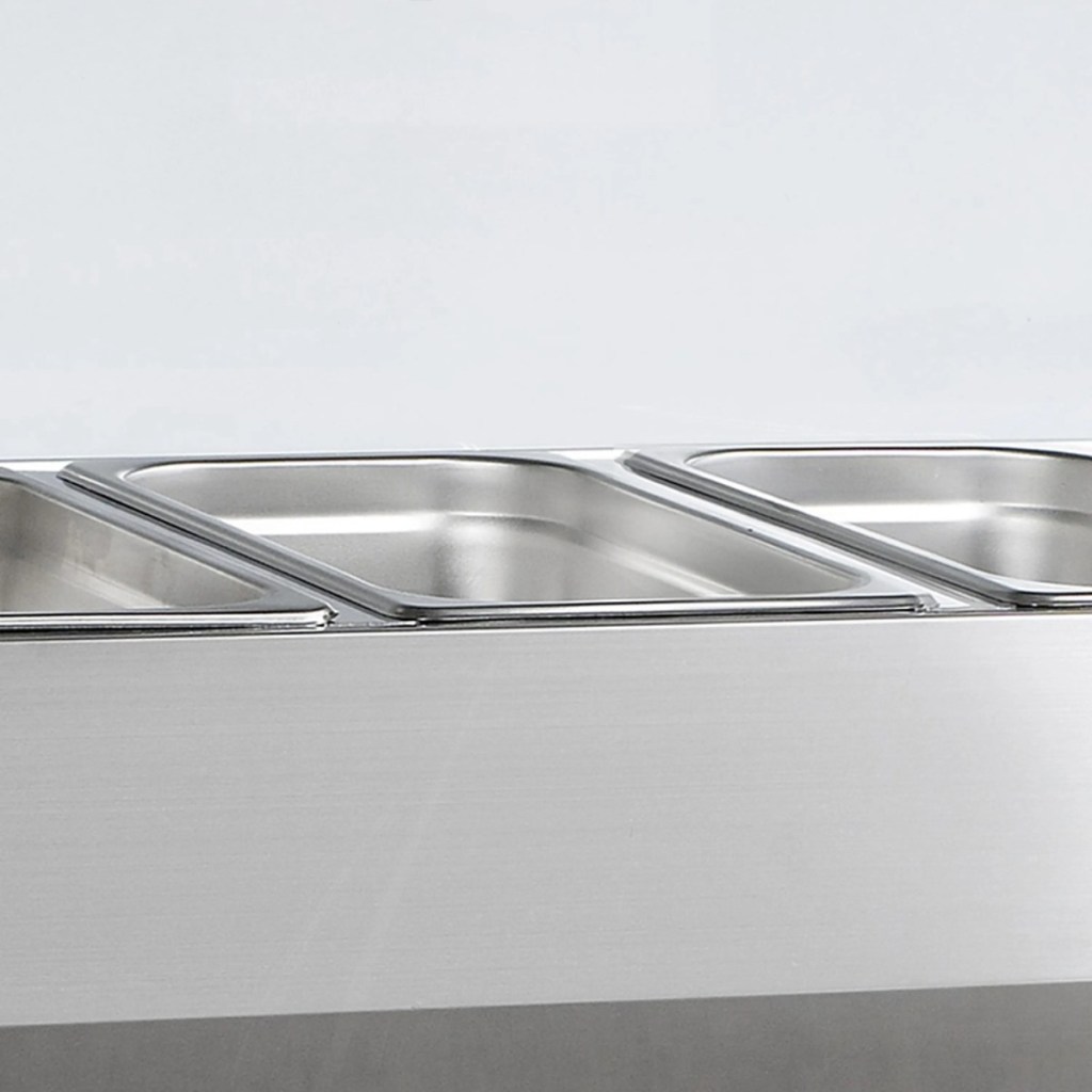 Каталог оборудования Холодильное оборудованиеВитрины для ингредиентовВитрина холодильная для ингредиентов TEFCOLD VK38-120 Витрина холодильная для ингредиентов TEFCOLD VK38-120 Код товара: 010-384 Поделиться: WhatsAppTelegram СравнитьДобавить в КПВ избранное 0 82 699 ₽ В корзину 0 шт В наличииСамовывоз сегодня бесплатно Взять в кредит Купить в лизинг Получить консультацию в Max Описание Характеристики Отзывы 0 Витрина холодильная для ингредиентов TEFCOLD VK38-120 предназначена для кратковременного хранения и демонстрации готовых салатов, мясных и рыбных закусок, а также ингредиентов на предприятиях общественного питания и торговли. Корпус и внутренняя обшивка выполнены из нержавеющей стали, что обеспечивает долговечность и легкость очистки. Гастроемкости в комплект не входят. Особенности: Статическое охлаждение — равномерное поддержание температуры для деликатных продуктов. Механическое размораживание — надежное удаление наледи без вмешательства пользователя. Хладагент R600a — экологичный и энергоэффективный. Электронный термостат и градусник — точная настройка и контроль температуры. Гнутый стеклянный колпак — обеспечивает обзор продукции и защиту от внешних воздействий. Регулируемые ножки — удобная установка и устойчивость на неровной поверхности. Климатический класс 4 — работа при температуре окружающей среды до +32°C. Вместимость — 4×GN 1/3 глубиной 150 мм, удобно для салатов и закусок. Перегородки — 3 длинных и 4 коротких для удобного разделения продуктов. Уровень шума — 47 дБ, почти бесшумная работа. Хладагент — 0,04 кг, эффективное охлаждение при минимальном расходе. Внутренние размеры — 845×305×155 мм, компактное размещение емкостей. TEFCOLD VK38-120 — компактная и надежная витрина для демонстрации и кратковременного хранения продуктов с безопасным поддержанием температурыИзображение товара, представленного на фото, может отличаться от его фактического вида. Показать все Габаритные размеры1200×395×435 ммДиапазон рабочей температурыот +2 до +10 °CДлина1200 ммГлубина395 ммВысота435 ммТип крышкиСтеклянная Гастроемкостей4 штТип гастроемкостейGN 1/3 Мощность0,112 ВтНапряжение220 ВТип охлажденияСтатическое Уровень шума47 дБКлиматический класс4 ХладагентR600a Вес нетто40 кгВес брутто45 кгТип оттайкиРучная Габариты в упаковке1280×440×310 ммБрендTefcold Оставить отзыв Еще никто не оставил отзыв на этот товар Похожие товары Перейти в каталог Под заказ Цена по запросу Витрина для ингредиентов Polair VT2-G (1/3) открытого типа Под заказ 60 350 ₽ Витрина для ингредиентов Polair VT2v-G (1/3) с подсветкой и защитным колпаком С этим товаром покупают В наличии 99 023 ₽ Стол холодильный среднетемпературный Polair ТМ2GN-G В наличии 161 242 ₽ Льдогенератор ICEMAKE ND 50 AS Под заказ 142 619 ₽ Шкаф холодильный МХМ Капри 1,5М нержавейка Ранее просмотрено Под заказ 140 751 ₽ Стол холодильный среднетемпературный HiCold SNE 1111/TN W