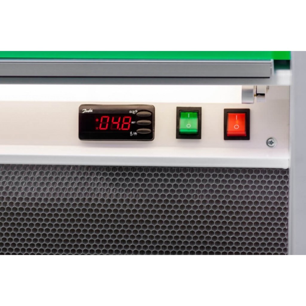 Каталог оборудования Холодильное оборудованиеГорки холодильныеГорка холодильная Север МАНГО 2200/970 ВХСнп-1250 пресервы Горка холодильная Север МАНГО 2200/970 ВХСнп-1250 пресервы Код товара: 065-963 Поделиться: WhatsAppTelegram СравнитьДобавить в КПВ избранное 0 129 236 ₽ В корзину 0 шт В наличииСамовывоз сегодня бесплатно Взять в кредит Купить в лизинг Получить консультацию в WhatsApp Описание Характеристики Отзывы 0 Горка холодильная Север МАНГО 2200/970 ВХСнп-1250 пресервы разработана для эффективной демонстрации, хранения и продажи пресервов, морепродуктов и другой рыбной продукции в магазинах, супермаркетах и торговых залах. Она сочетает удобство выкладки, поддержание оптимальной температуры и привлекательное оформление витрины, привлекая внимание покупателей и облегчая работу персонала. Особенности модели: Поставляется без боковин, что упрощает доступ и позволяет использовать оборудование в составе линии. Верхняя полка оснащена зеркалом для лучшей визуальной презентации продукции. Три ряда полок длиной 500 мм можно регулировать по наклону для удобного расположения товара. Прозрачные ограждения из оргстекла обеспечивают аккуратную выкладку и защиту продуктов. Белые пластиковые ценникодержатели упрощают маркировку и информирование покупателей. Привлекательный внешний вид обеспечивают цветные алюминиевые панели и встроенная верхняя подсветка. Ванна выполнена из антикоррозийного пластика, что повышает срок службы оборудования. Ночные шторки с быстросъёмным креплением помогают сохранять температуру и экономить электроэнергию в нерабочее время. Встроены вентиляторы EBM-Papst с двумя скоростями, контроллеры Danfoss / Carel, механический ТРВ. Автоматическая система оттайки поддерживает стабильную работу. Для удобства обслуживания предусмотрен клапан заправки, шкаф управления с быстрым доступом и комплект подключения к системе дренажа. Модель Север МАНГО 2200/970 ВХСнп-1250 сочетает функциональность и надёжность. Она создана для торговли пресервами и рыбными продуктами, обеспечивая выгодную подачу товара, удобство эксплуатации и долгий срок службы.Серия Север МангоИзображение товара, представленного на фото, может отличаться от его фактического вида. Показать все Габаритные размеры1250×970×2200 ммДиапазон рабочей температурыот -3 до +3 °CДлина1250 ммГлубина970 ммВысота2200 ммТип горкиГастрономическая Тип двериБез двери Глубина выкладки660 ммПлощадь выкладки2,39 м²Макс. нагрузка на полку160 кг/м2Полезный объем1,4 м3Расход электроэнергии в сутки3,1 кВтПодсветкаЕсть ХолодообеспечениеВыносное Напряжение220 ВХолодопроизводительность1750 ВтТип охлажденияДинамическое Тип оттайкиТЭН Количество полок3 штХладагентR404A БрендСеверВсе холодильные горки 1,25 мВсе открытые холодильные горкиВсе холодильные горки с выносным агрегатом Оставить отзыв Еще никто не оставил отзыв на этот товар Похожие товары Перейти в каталог Цена по запросу Горка холодильная Иней Lida-Stella 1,3/0,95 С этим товаром покупают 110 970 ₽ Витрина холодильная Carboma GС95 ВХСр-1,5 (GС95 SV 1,5-1) 124 536 ₽ Шкаф холодильный МХМ Капри 1,12СК купе 135 500 ₽ Ларь-бонета морозильная МХМ Корсика ЛХН-2500 Ранее просмотрено Цена по запросу Откатная холодильная дверь Север НТ-ОХД 1400*2200/120 Популярные товары 82 662 ₽ Витрина холодильная настольная TEFCOLD LCT750F BLACK 151 496 ₽ Шкаф пекарский двухсекционный МариХолодМаш ШПЭ102 172 115 ₽ Откатная холодильная 