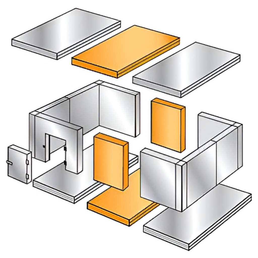 • Толщина стального листа стеновых и потолочных панелей: 0,5 мм, половых панелей: 1,2 мм — гарантирует высокую прочность и износостойкость