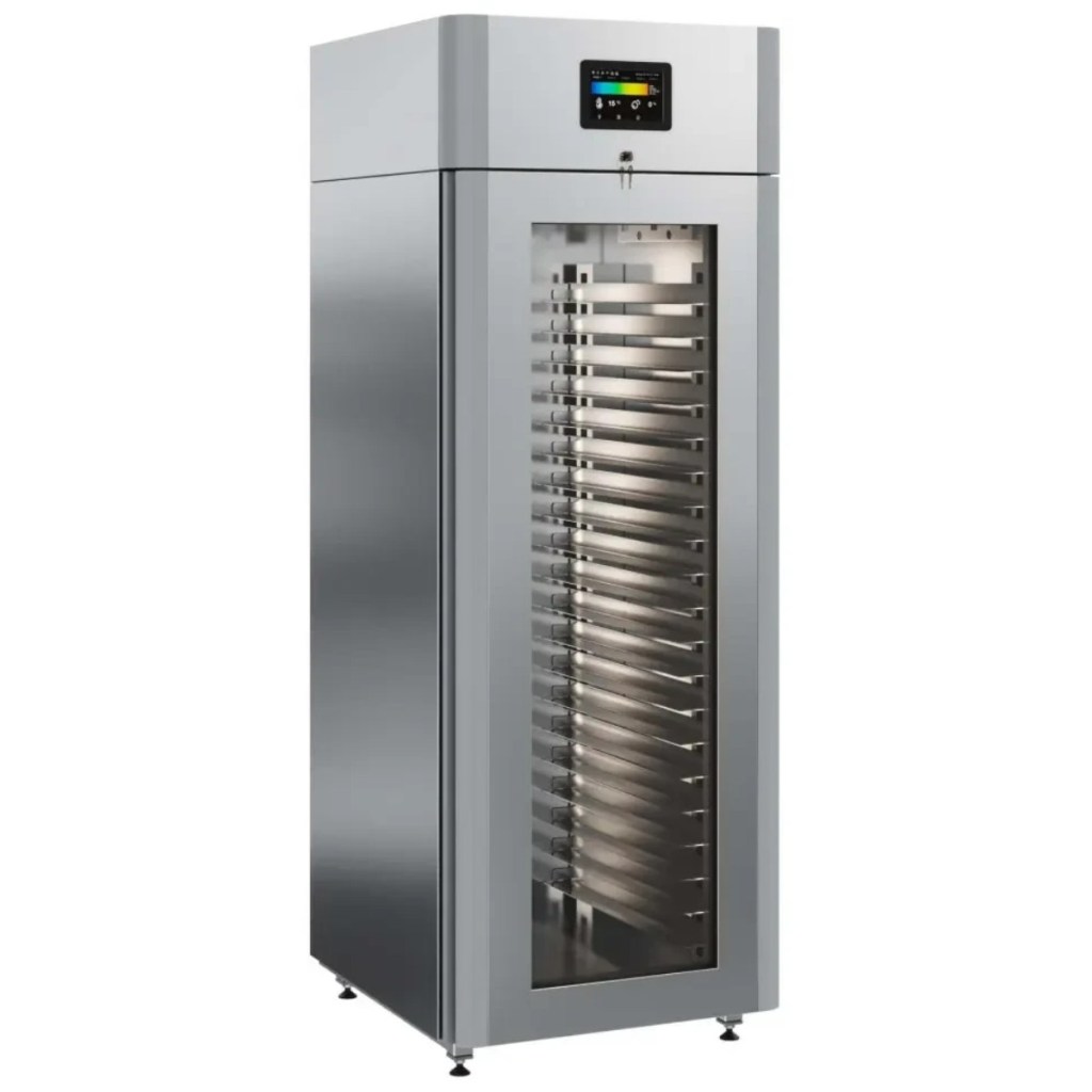 Каталог оборудования Холодильное оборудованиеШкафы холодильныеСпециализированные холодильные шкафыШкаф холодильный для хлебопекарных производств Polair CS107-Bakery Br со стеклом (Тип 2) Шкаф холодильный для хлебопекарных производств Polair CS107-Bakery Br со стеклом (Тип 2) Код товара: 062-623 Поделиться: WhatsAppTelegram СравнитьДобавить в КПВ избранное 0 419 900 ₽ В корзину 0 шт Под заказСамовывоз сегодня бесплатно Взять в кредит Купить в лизинг Получить консультацию в WhatsApp Описание Характеристики Отзывы 0 Инструкции 5 Шкаф холодильный для хлебопекарных производств Polair CS107-Bakery Br со стеклом (Тип 2) предназначен для создания оптимальных условий хранения и расстойки заготовок из теста на предприятиях общественного питания и торговли. Корпус цельнозаливной, выполнен из нержавеющей стали, дверь — стеклопакет. Оборудование стабильно работает при температуре окружающей среды до +40 °C. В комплект входят 20 пар направляющих размером 400×600 мм. Особенности: Многофункциональные режимы: охлаждение тестовых заготовок, замедление ферментации, хранение, регенерация, брожение и расстойка Динамическое охлаждение с мягким обдувом без заветривания и автоматическая оттайка с системой испарения конденсата Панель управления с 7" дисплеем: контроль температуры, влажности (регулируется от 60 до 95 %), скорости вентилятора и времени, возможность создания и сохранения собственных программ Встроенный ультразвуковой увлажнитель (требуется подключение к системе водоочистки и канализации) Эргономичная конструкция: верхнее расположение агрегата, распашная дверь со стеклопакетом и механизмом самозакрывания, педаль для удобного открытия, съёмные направляющие и легко заменяемый уплотнитель с магнитной вставкой Простота ухода: штампованное углубление в дне корпуса для сбора загрязнений Экологичный хладагент R290 Энергоэффективность: потребляемая мощность — 0,55 кВт (охлаждение), 0,9 кВт (нагрев) Толщина стенки корпуса — 43 мм Polair CS107-Bakery Br со стеклом (Тип 2) — современный шкаф отложенной расстойки, обеспечивающий полный контроль и гибкость при работе с тестовыми заготовками. Благодаря многофункциональным режимам, точной настройке параметров и продуманной конструкции, он становится надёжным решением для пекарен и кондитерских, стремящихся к высокому качеству продукции и удобству в эксплуатации.Изображение товара, представленного на фото, может отличаться от его фактического вида. Показать все Габаритные размеры697×1005×1960 ммДиапазон рабочей температурыот -10 до +40 °CДлина697 ммШирина1005 ммВысота1960 ммОбъём700 лКол-во дверей1 Тип двериСтеклянная Уровень влажностиот 60 до 95 %Направляющие под EN 40*6020 Расстояние между направляющими60 ммХолодильный агрегатВстроенный Тип оттайкиАвтоматическая Тип охлажденияДинамический ПодсветкаЕсть ХладагентR290 Вес нетто180 кгВес брутто205 кгБрендPolairВсе специализированные холодильные шкафы Из нержавейки Оставить отзыв Еще никто не оставил отзыв на этот товар Схема POLAIR CS107 Bakery Br.jpgИнструкция на POLAIR CS107 Bakery Br.pdfБрошюра на хлебопекарное оборудование POLAIR.pdfДекларация о соответствии.pdfСертификат соответствия.pdf Похожие товары Перейти в каталог Под заказ 389 300 ₽ Шкаф холодильный для вызревания мяса Polair CS107 Meat (Тип 1) Под заказ 373 915 ₽ Шкаф холодильный для вызревания салями Polair CS107 Salami черный, со стеклом Под заказ 385 475 ₽ Шкаф холодильный для вызревания сыра Polair CS107 Chee
