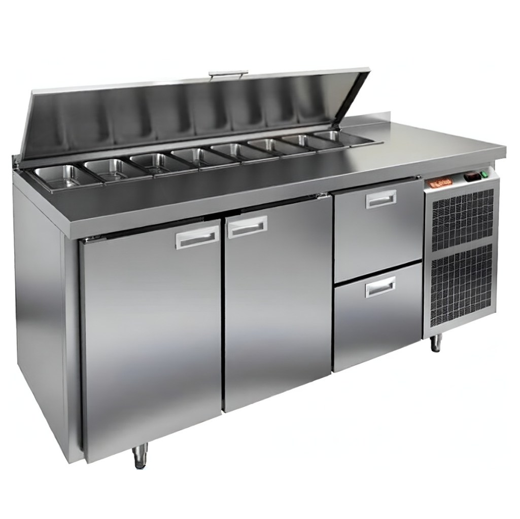 Каталог оборудования Холодильное оборудованиеСтолы охлаждаемыеСтолы холодильные для салатовСтол холодильный для салатов HiCold SL1-112GN (1/3) с крышкой Стол холодильный для салатов HiCold SL1-112GN (1/3) с крышкой Код товара: 064-841 Поделиться: WhatsAppTelegram СравнитьДобавить в КПВ избранное 0 198 892 ₽ В корзину 0 шт Под заказСамовывоз сегодня бесплатно Взять в кредит Купить в лизинг Получить консультацию в WhatsApp Описание Характеристики Отзывы 0 Инструкции 2 Стол холодильный для салатов HiCold SL1-112GN (1/3) предназначен для использования на предприятиях общественного питания и торговли. Он объединяет рабочую поверхность и охлаждаемый отсек, что делает его удобным решением для хранения, охлаждения и подготовки ингредиентов при приготовлении салатов, пиццы и других блюд. Такая конструкция позволяет повару работать быстрее и эффективнее, так как все необходимые продукты находятся под рукой. Корпус и столешница выполнены из прочной нержавеющей стали, устойчивой к коррозии и легко поддающейся санитарной обработке. Металлическая крышка защищает продукты от загрязнений и сохраняет их свежесть. Особенности модели: Электронная панель управления — точная настройка температурного режима. 2 глухие двери — удобный доступ к холодильному отсеку. 2 выдвижных ящика — быстрое размещение и замена продуктов. Вместимость салат-бара — до 8 гастроемкостей глубиной до 100 мм. Автоматические доводчики дверей с фиксацией в открытом положении. Легкозаменяемые магнитные уплотнители — надежная герметичность. Открытая агрегатная часть — быстрый доступ для обслуживания. Регулируемые по высоте ножки — устойчивость даже на неровном полу. Толщина столешницы, борта и теплоизоляции — 50 мм, что обеспечивает прочность и энергоэффективность конструкции. HiCold SL1-112GN (1/3) — практичное и удобное решение для профессиональной кухни, обеспечивающее удобную подготовку и хранение ингредиентов.Изображение товара, представленного на фото, может отличаться от его фактического вида. Показать все Габаритные размеры1835×700×850 ммДиапазон рабочей температурыот +2 до +10 °CРасположение агрегатаБоковое Материал столешницыНержавеющая Тип столаС дверьми и ящиками Тип двериГлухая Объём505 лКоличество дверей2 штТип гастроемкостейGN 1/3 Количество ящиков2 штРазмер полки530×325 ммНапряжение220 ВМощность0,46 кВтТип охлажденияДинамическое Тип оттайкиАвтоматическая СтолешницаС бортом Вес нетто120 кгВес брутто140 кгБрендHicold Оставить отзыв Еще никто не оставил отзыв на этот товар Паспорт на HICOLD SL1-112GN.pdfДекларация о соответствии.pdf Ранее просмотрено Под заказ 208 792 ₽ Стол холодильный для салатов HiCold SLE1-122GN (1/3) О с крышкой Под заказ 204 921 ₽ Стол холодильный для салатов HiCold SL1-22GN (1/3) с крышкой Под заказ 229 492 ₽ Стол холодильный для салатов HiCold SL1-122GN (1/3) с крышкой