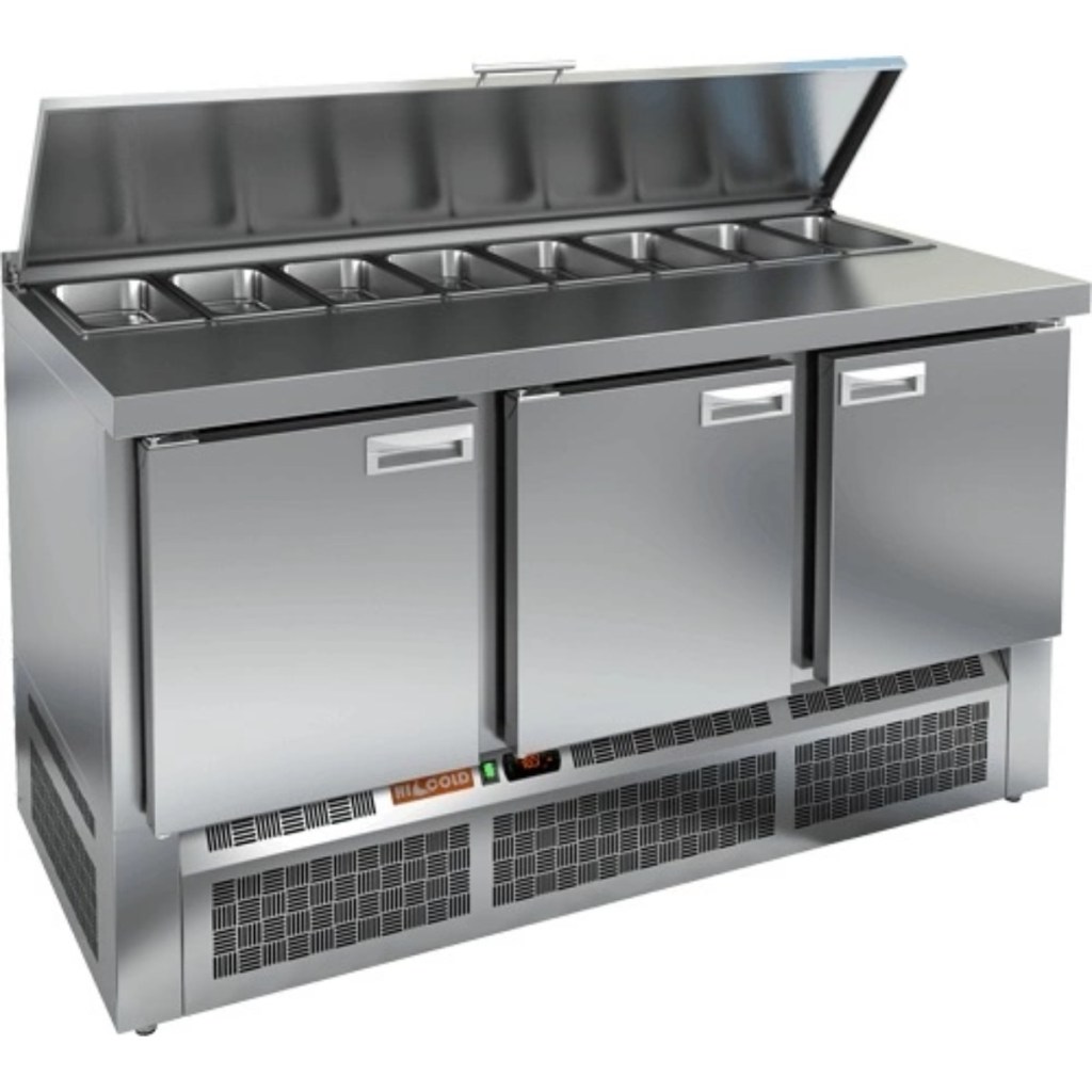 Каталог оборудования Холодильное оборудованиеСтолы охлаждаемыеСтолы холодильные для салатовСтол холодильный для салатов HiCold SLE1-111SN (1/3) Стол холодильный для салатов HiCold SLE1-111SN (1/3) Код товара: 061-993 Поделиться: WhatsAppTelegram СравнитьДобавить в КПВ избранное 0 147 141 ₽ В корзину 0 шт Под заказСамовывоз сегодня бесплатно Взять в кредит Купить в лизинг Получить консультацию в WhatsApp Описание Характеристики Отзывы 0 Инструкции 2 Стол холодильный для салатов HiCold SLE1-111SN (1/3) предназначен для профессионального использования в заведениях общественного питания и торговли. Он обеспечивает не только охлаждение и кратковременное хранение продуктов, но и удобную рабочую поверхность для подготовки ингредиентов, что особенно актуально при приготовлении салатов, пиццы и холодных блюд. Корпус и столешница изготовлены из высококачественной нержавеющей стали, что гарантирует долговечность, легкость в уходе и соответствие санитарным требованиям. Основные особенности: Электронная панель управления — для точной настройки температуры и простоты эксплуатации. 3 вместительные полки GN 1/1 — обеспечивают организованное хранение продуктов. Салат-бар на 8 гастроемкостей — удобно размещает большое количество ингредиентов под рукой. Автоматические доводчики дверей — с фиксацией в открытом положении для комфортной загрузки. Магнитные уплотнители — легко заменяются и обеспечивают надежное уплотнение. Открытая агрегатная часть — облегчает доступ для обслуживания и ремонта. Регулируемые по высоте ножки — позволяют точно выставить уровень на неровной поверхности. Глубина гастроемкостей — до 100 мм, толщина столешницы, борта и теплоизоляции — по 50 мм — для надежной термоизоляции и стабильной работы. HiCold SLE1-111SN — это практичное решение для профессиональных кухонь, где важно сочетание удобства, вместительности и надежности. Модель позволяет организовать рабочее пространство эффективно и с комфортом для персонала.Изображение товара, представленного на фото, может отличаться от его фактического вида. Показать все Габаритные размеры1485×600×850 ммДиапазон рабочей температурыот +2 до +10 °CРасположение агрегатаНижнее Материал столешницыНержавеющая Тип столаС дверьми Тип двериГлухая Объём320 лКоличество дверей3 штТип гастроемкостейGN 1/3 Размер полки430х325 ммНапряжение220 ВМощность0,22 кВтТип охлажденияДинамическое Тип оттайкиАвтоматическая СтолешницаС бортом Вес нетто94 кгВес брутто152 кгБрендHicold Оставить отзыв Еще никто не оставил отзыв на этот товар Паспорт на HICOLD SLE1-111SN.pdfДекларация о соответствии.pdf Ранее просмотрено Под заказ Цена по запросу Стол холодильный для салатов Cooleq S903-7GN 1/3 В наличии 155 551 ₽ Стол холодильный для пиццы HURAKAN HKN-PZG3-116 камень