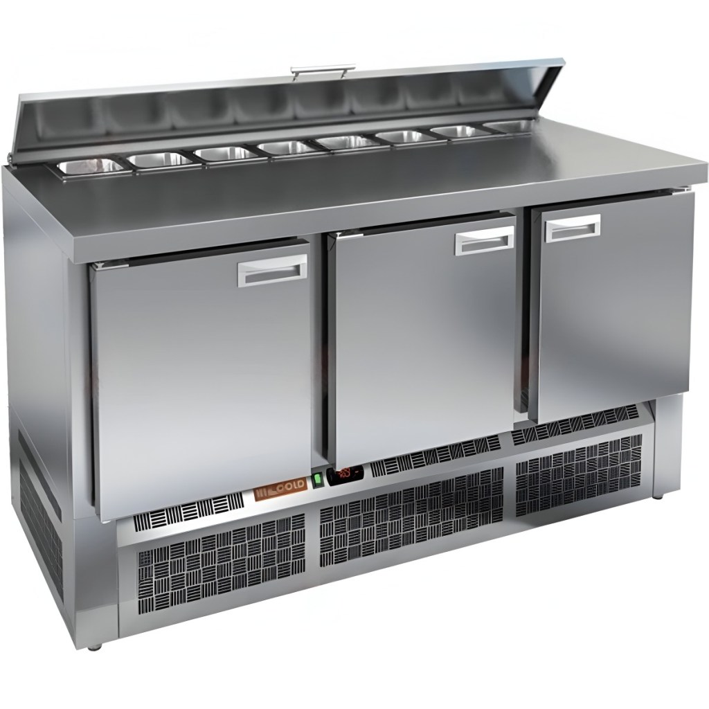 Стол холодильный для салатов HiCold SLE2-111GN (1/6) О З с крышкой предназначен для предприятий общественного питания и торговли. Он используется для хранения, охлаждения и обработки ингредиентов, применяемых при приготовлении салатов, пиццы, закусок и других блюд.