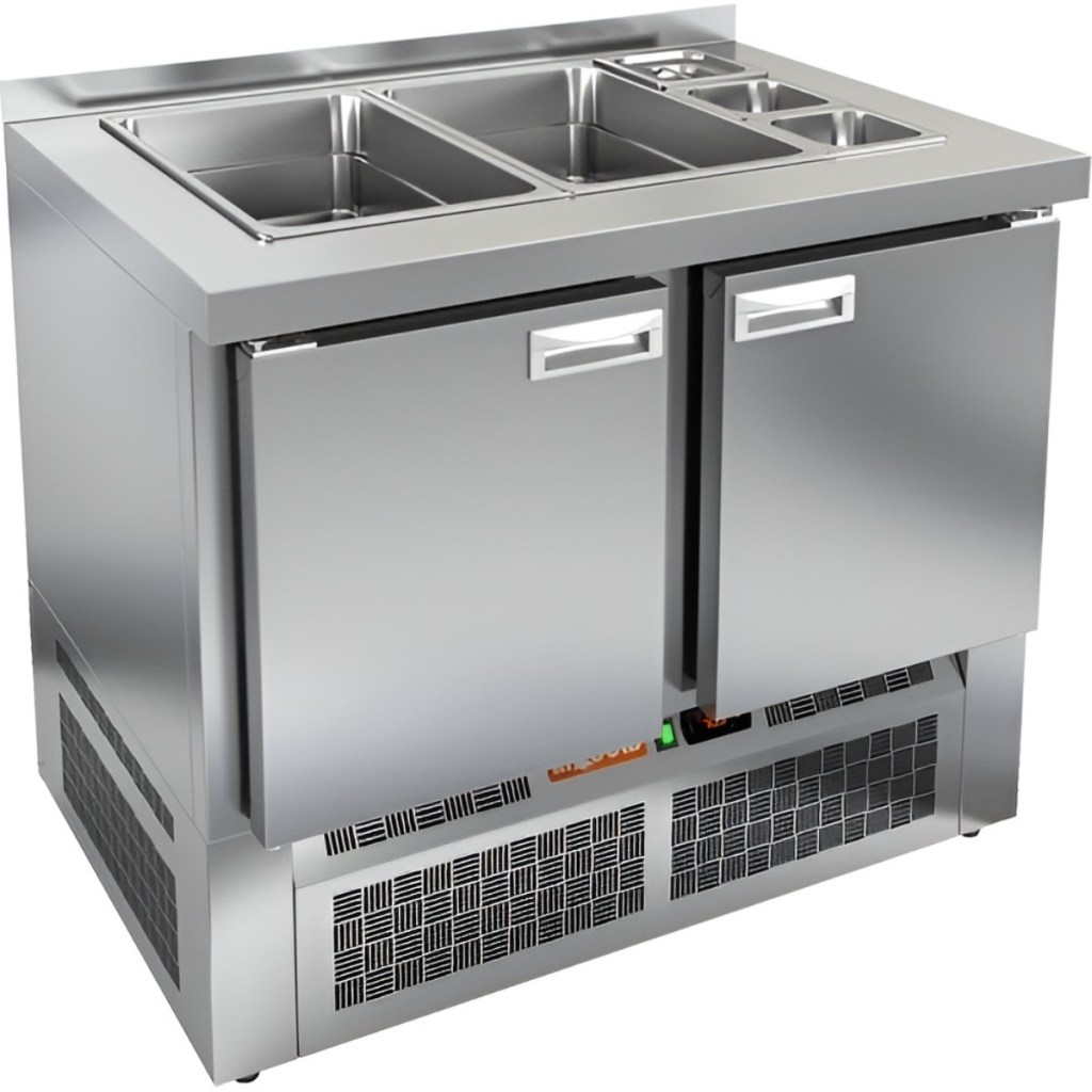 Каталог оборудования Холодильное оборудованиеСтолы охлаждаемыеСтолы холодильные для салатовСтол холодильный для салатов HiCold SLE3-11GN без крышки Стол холодильный для салатов HiCold SLE3-11GN без крышки Код товара: 064-935 Поделиться: WhatsAppTelegram СравнитьДобавить в КПВ избранное 0 118 162 ₽ В корзину 0 шт Под заказСамовывоз сегодня бесплатно Взять в кредит Купить в лизинг Получить консультацию в WhatsApp Описание Характеристики Отзывы 0 Инструкции 2 Стол холодильный для салатов HiCold SLE3-11GN без крышки предназначен для охлаждения и кратковременного хранения продуктов, используемых при приготовлении салатов, закусок, сэндвичей и других блюд. Он идеально подходит для предприятий общественного питания и торговли, где требуется удобный доступ к охлаждённым ингредиентам. Модель сочетает в себе рабочую поверхность и охлаждаемый объём, что обеспечивает эффективную организацию кухонного пространства. Корпус и столешница изготовлены из нержавеющей стали, что гарантирует долговечность конструкции, устойчивость к коррозии и соответствие санитарным нормам. Особенности модели: Электронная панель управления — обеспечивает точный контроль температуры Две полки формата GN 1/1 — для удобного размещения ингредиентов Салат-бар вмещает 2 GN 1/1 и 3 GN 1/6 — для организации набора продуктов Автоматические доводчики дверей с фиксацией открытого положения Магнитные уплотнители — легко заменяются при износе Открытая агрегатная часть — упрощает обслуживание оборудования Регулируемые ножки — для устойчивой установки на любой поверхности Глубина гастроемкостей — до 100 мм Толщина столешницы — 50 мм Толщина теплоизоляции — 50 мм HiCold SLE3-11GN без крышки — функциональное решение для профессиональной кухни, позволяющее хранить ингредиенты в охлаждённом состоянии и всегда иметь их под рукой во время приготовления блюд. Изображение товара, представленного на фото, может отличаться от его фактического вида. Показать все Габаритные размеры1000×700×1315 ммДиапазон рабочей температурыот +2 до +10 °CРасположение агрегатаНижнее Материал столешницыНержавеющая Тип столаС дверьми Тип двериГлухая Объём245 лКоличество дверей2 штТип гастроемкостейGN 1/1, GN 1/6 Размер полки530×325 ммНапряжение220 ВМощность0,15 кВтТип охлажденияДинамическое Тип оттайкиАвтоматическая СтолешницаС бортом Вес нетто95 кгВес брутто140 кгБрендHicold Оставить отзыв Еще никто не оставил отзыв на этот товар Паспорт на HICOLD SLE3-11GN.pdfДекларация о соответствии.pdf Ранее просмотрено Под заказ 139 852 ₽ Стол холодильный для салатов HiCold SLE3-111GN О без крышки Под заказ 185 031 ₽ Стол холодильный для салатов HiCold SLE2-22GN (1/6) с крышкой Под заказ 154 431 ₽ Стол холодильный для салатов HiCold SLE2-12GN (1/6) с крышкой Под заказ 109 310 ₽ Стол холодильный для салатов Polair TMi2GNsal-G Под заказ 311 482 ₽ Стол холодильный для салатов HiCold SLE3-2222GN с крышкой Под заказ 140 661 ₽ Стол холодильный для салатов HiCold SLE3-11GN М без крышки Под заказ 146 782 ₽ Стол холодильный для салатов HiCold SLE2-111SN (1/6) О с крышкой