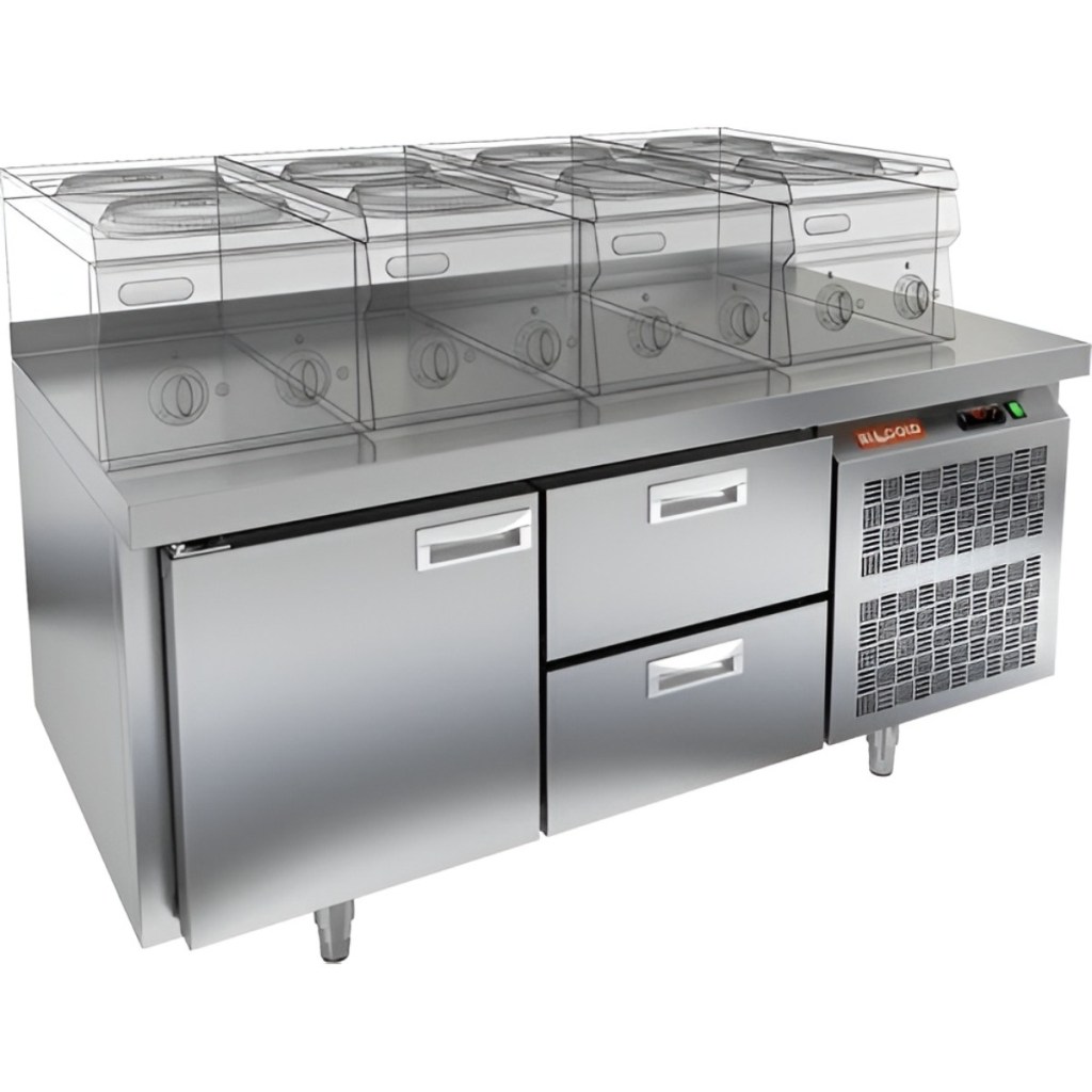 Каталог оборудования Холодильное оборудованиеСтолы охлаждаемыеСтолы холодильные под тепловое оборудованиеСтол охлаждаемый HiCold GN 12/TN LT под тепловое оборудование Стол охлаждаемый HiCold GN 12/TN LT под тепловое оборудование Код товара: 065-466 Поделиться: WhatsAppTelegram СравнитьДобавить в КПВ избранное 0 142 012 ₽ В корзину 0 шт Под заказСамовывоз сегодня бесплатно Взять в кредит Купить в лизинг Получить консультацию в WhatsApp Описание Характеристики Отзывы 0 Инструкции 2 Стол охлаждаемый HiCold GN 12/TN LT под тепловое оборудование предназначен для обработки ингредиентов и временного хранения скоропортящихся продуктов и напитков на предприятиях общественного питания и торговли. Устройство совмещает функции рабочей поверхности и холодильной камеры. Столешница рассчитана на установку теплового оборудования: под рабочей поверхностью встроен ДСП-лист, который укрепляет конструкцию и препятствует проникновению тепла внутрь. Такое решение обеспечивает дополнительную жесткость, позволяет рационально использовать рабочее пространство и повышает эффективность работы на кухне. Особенности: 1 распашная дверь и 2 выдвижные секции обеспечивают удобный доступ к хранимым продуктам. гастроемкостей и обеспечивают удобство размещения продуктов. Автоматические доводчики дверей с фиксатором открытого положения повышают эргономику и способствуют сохранению холода. Легкозаменяемые магнитные уплотнители обеспечивают плотное прилегание дверей и лёгкость в обслуживании. Открытая агрегатная часть упрощает доступ к компрессору при техническом обслуживании. Регулируемые по высоте ножки позволяют установить стол на неровной поверхности. Толщина столешницы — 50 мм обеспечивает прочность рабочей поверхности. Высота борта — 50 мм предотвращает падение продуктов и инвентаря. Толщина теплоизоляции — 50 мм способствует энергоэффективности и стабильному температурному режиму. HiCold GN 12/TN LT — это надёжное и удобное оборудование, сочетающее охлаждение и рабочее пространство. Благодаря продуманной конструкции и совместимости с гастроемкостями GN 1/1, стол станет практичным решением для кухни любого профессионального уровня.Изображение товара, представленного на фото, может отличаться от его фактического вида. Показать все Габаритные размеры1390×700×675 ммДиапазон рабочей температурыот -2 до +10 °CМатериал столешницыНержавеющая Расположение агрегатаБоковое Объём255 лТип столаС дверьми и ящиками Тип двериГлухая Количество дверей1 штКоличество ящиков2 штРазмер полки530×325 ммНапряжение220 ВМощность0,22 кВтТип охлажденияДинамический Тип оттайкиАвтоматическая СтолешницаС бортом Габариты в упаковке1550×850×850 ммВес нетто145 кгВес брутто165 кгБрендHicold Оставить отзыв Еще никто не оставил отзыв на этот товар Паспорт на HICOLD GN 12TN LT.pdfДекларация о соответствии.pdf Похожие товары Перейти в каталог В наличии 77 661 ₽ Стол холодильный среднетемпературный HiCold GN 11/TN W Под заказ 125 670 ₽ Стол холодильный среднетемпературный Abat СХС-70-01 с бортом (дверь, дверь) С этим товаром покупают В наличии 201 690 ₽ Шкаф морозильный Полюс Carboma F1400 В наличии 195 030 ₽ Плита индукционная Аbat КИП-47Н Ранее просмотрено Под заказ 194 662 ₽ Стол охлаждаемый HiCold SN 22/TN LT М под тепловое оборудование Под заказ 223 642 ₽ Стол охлаждаемый HiCold SN 222/TN LT под тепловое оборудование Под заказ 169 012 ₽ Стол морозильный HiCold GN 111/BT LT под тепловое обо