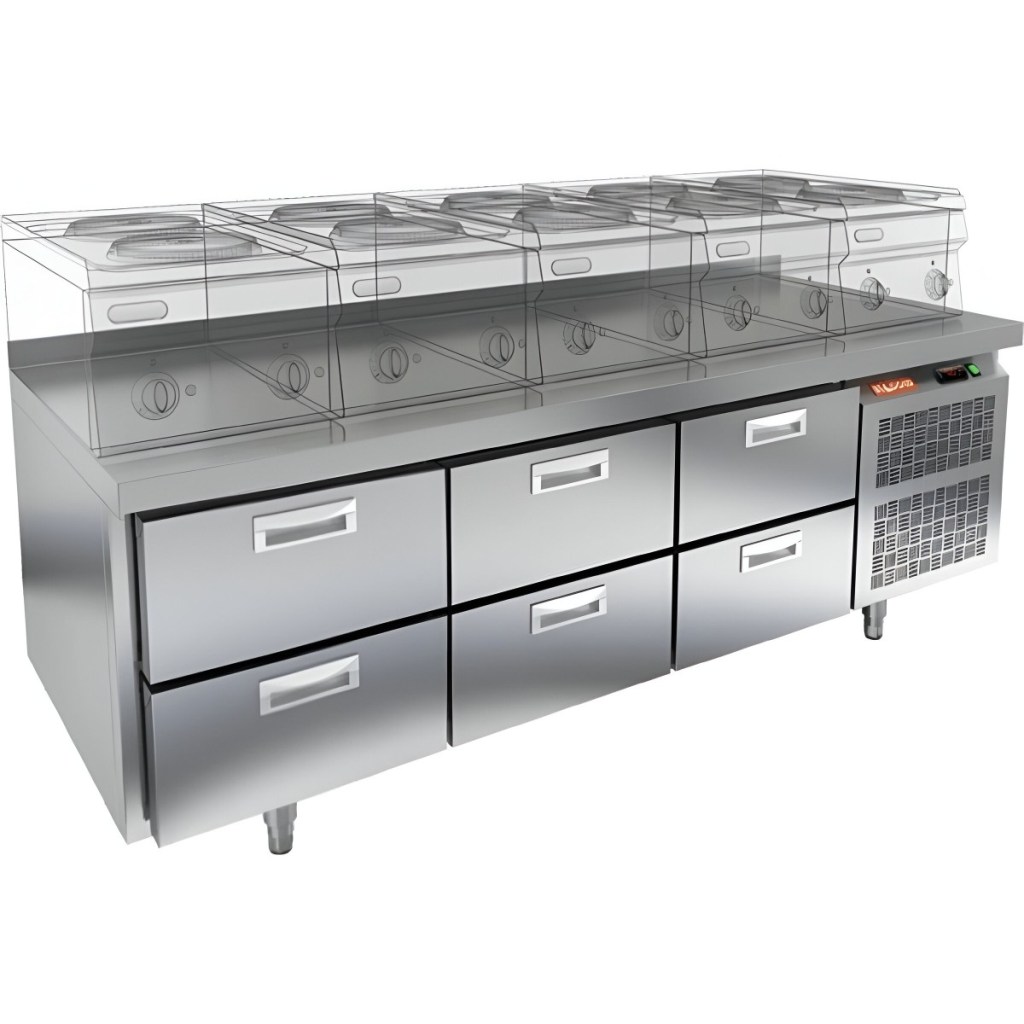 Каталог оборудования Холодильное оборудованиеСтолы охлаждаемыеСтолы холодильные под тепловое оборудованиеСтол охлаждаемый HiCold GN 222/TN LT SH О под тепловое оборудование Стол охлаждаемый HiCold GN 222/TN LT SH О под тепловое оборудование Код товара: 065-448 Поделиться: WhatsAppTelegram СравнитьДобавить в КПВ избранное 0 222 292 ₽ В корзину 0 шт Под заказСамовывоз сегодня бесплатно Взять в кредит Купить в лизинг Получить консультацию в WhatsApp Описание Характеристики Отзывы 0 Инструкции 2 Стол охлаждаемый HiCold GN 222/TN LT SH О под тепловое оборудование предназначен для обработки продуктов и временного хранения скоропортящихся ингредиентов и напитков на предприятиях общественного питания и торговли. Устройство совмещает функции холодильной камеры и рабочей поверхности, что делает его особенно удобным для профессиональных кухонь. Столешница рассчитана на установку теплового оборудования: под рабочей поверхностью встроен ДСП-лист, который укрепляет конструкцию и препятствует проникновению тепла внутрь. Такое решение обеспечивает дополнительную жесткость, позволяет рационально использовать рабочее пространство и повышает эффективность работы на кухне. Внимание! На фото показан стол с бортом. Данная модель поставляется без борта. Особенности: 6 выдвижных ящиков обеспечивают удобный доступ к продуктам и рациональную организацию пространства Автоматические доводчики дверей с фиксатором открытого положения улучшают эргономику работы и помогают сохранить холод внутри камеры. Легкозаменяемые магнитные уплотнители способствуют герметичности и простоте технического обслуживания. Конструкция на низких ножках обеспечивает стабильность и удобство эксплуатации. Нержавеющая столешница без борта для свободного использования рабочей поверхности. Толщина столешницы — 50 мм обеспечивает надёжную опору при интенсивной эксплуатации. Толщина теплоизоляции — 50 мм способствует энергоэффективности и поддержанию стабильной температуры. Температурный диапазон окружающей среды — от 12 до 37 °C, что делает оборудование универсальным в разных климатических условиях. HiCold GN 222/TN LT SH О сочетает функциональность, надёжность и простоту в обслуживании. Идеально подходит для кухонь ресторанов, кафе и других заведений общепита, где важно одновременно эффективно хранить продукты и иметь под рукой рабочее пространство.Изображение товара, представленного на фото, может отличаться от его фактического вида. Показать все Габаритные размеры1835×700×610 ммДиапазон рабочей температурыот -2 до +10 °CМатериал столешницыНержавеющая Расположение агрегатаБоковое Объём375 лТип столаС ящиками Количество ящиков6 штНапряжение220 ВМощность0,46 кВтТип охлажденияДинамический Тип оттайкиАвтоматическая СтолешницаБез борта Габариты в упаковке2000×850×850 ммВес нетто124 кгВес брутто170 кгБрендHicold Оставить отзыв Еще никто не оставил отзыв на этот товар Паспорт на HICOLD GN 222/TN LT SH О.pdfДекларация о соответствии.pdf Похожие товары Перейти в каталог Под заказ 137 619 ₽ Стол холодильный среднетемпературный Polair TD3GN-G Под заказ 108 164 ₽ Стол холодильный среднетемпературный HURAKAN HKN-GN3TN С этим товаром покупают Под заказ 389 300 ₽ Шкаф холодильный для вызревания мяса Polair CS107 Meat (Тип 1) Ранее просмотрено Под заказ 189 622 ₽ Стол морозильный HiCold SN 22/BT LT SH под тепловое оборудование Под заказ 169 911 ₽ Стол охлаждаемый HiCold SN 22/TN LT под те