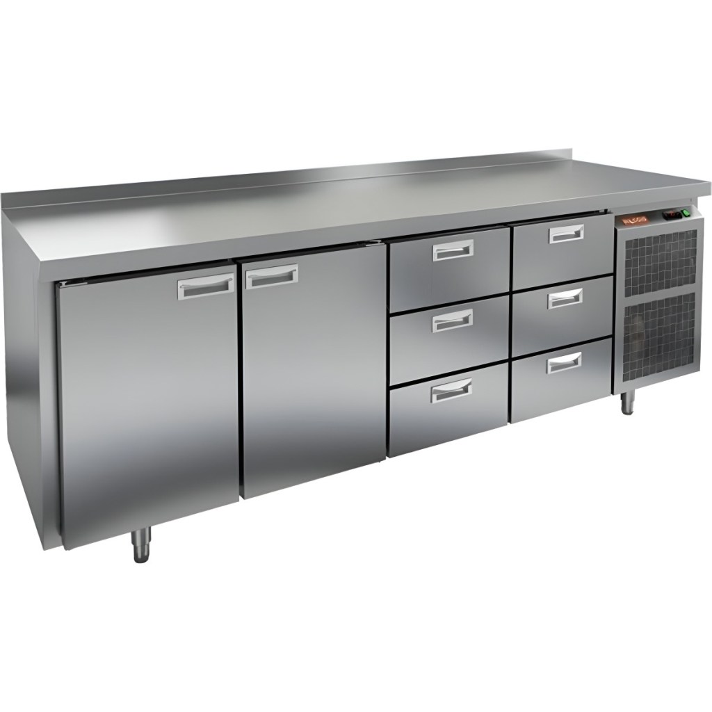 Каталог оборудования Холодильное оборудованиеСтолы охлаждаемыеСтолы холодильные среднетемпературныеСтол холодильный среднетемпературный HiCold GN 1133/TN Стол холодильный среднетемпературный HiCold GN 1133/TN Код товара: 001-334 Поделиться: WhatsAppTelegram СравнитьДобавить в КПВ избранное 0 259 192 ₽ В корзину 0 шт Под заказСамовывоз сегодня бесплатно Взять в кредит Купить в лизинг Получить консультацию в WhatsApp Описание Характеристики Отзывы 0 Инструкции 1 Стол холодильный среднетемпературный HiCold GN 1133/TN предназначен для обработки ингредиентов и кратковременного хранения скоропортящихся продуктов и напитков на предприятиях общественного питания и торговли. Модель оснащена удобной электронной панелью управления. Корпус и столешница выполнены из прочной и гигиеничной нержавеющей стали. В комплект входят 2 полки для размещения продуктов. Особенности: 2 распашные двери обеспечивают быстрый и удобный доступ к охлаждаемому отделению. 6 выдвижных секций позволяют рационально организовать внутреннее пространство и ускорить доступ к ингредиентам. Автоматические доводчики дверей с фиксатором открытого положения повышают комфорт при эксплуатации. Легкозаменяемые магнитные уплотнители обеспечивают надёжную герметичность и упрощают техническое обслуживание. Регулируемые по высоте ножки дают возможность выровнять стол на неровной поверхности. Толщина столешницы — 50 мм, что делает её устойчивой к механическим нагрузкам. Высота борта — 50 мм предотвращает скатывание продуктов и жидкостей с поверхности. Толщина теплоизоляции — 50 мм, что способствует поддержанию стабильной температуры и снижению энергозатрат. Диапазон температуры окружающего воздуха — от 12 до 37 °C, что делает модель универсальной для различных условий эксплуатации. HiCold GN 1133/TN — это практичный и надёжный холодильный стол, сочетающий удобство работы, продуманную организацию внутреннего пространства и высокую энергоэффективность. Идеально подходит для профессиональных кухонь.Изображение товара, представленного на фото, может отличаться от его фактического вида. Показать все Габаритные размеры2280×700×850 ммДиапазон рабочей температурыот -2 до +10 °CРасположение агрегатаБоковое Материал столешницыНержавеющая Тип столаС дверьми и ящиками Тип двериГлухая Объём660 лКоличество дверей2 штКоличество полок2 штКоличество ящиков6 штРазмер полки530×325 ммНапряжение220 ВМощность0,48 кВтТип охлажденияДинамический Тип оттайкиАвтоматическая СтолешницаС бортом Вес нетто212 кгВес брутто236 кгБрендHicoldВсе холодильные столы HicoldВсе нержавеющие холодильные столы Все холодильные столы с бортом Оставить отзыв Еще никто не оставил отзыв на этот товар Паспорт на HICOLD GN 1133/TN.pdf Похожие товары Перейти в каталог В наличии 139 401 ₽ Стол холодильный среднетемпературный HiCold GN 1111 BR2 TN В наличии 113 121 ₽ Стол холодильный среднетемпературный HiCold GN 1111/TN W Под заказ 148 851 ₽ Стол холодильный среднетемпературный HiCold SN 1111/TN W В наличии 139 583 ₽ Стол холодильный среднетемпературный Cooleq GN4200TN с бортом С этим товаром покупают Под заказ 203 827 ₽ Шкаф морозильный Abat ШХн-1,4 Ранее просмотрено Под заказ 130 633 ₽ Стол морозильный Kayman KСМ-112/70-Н