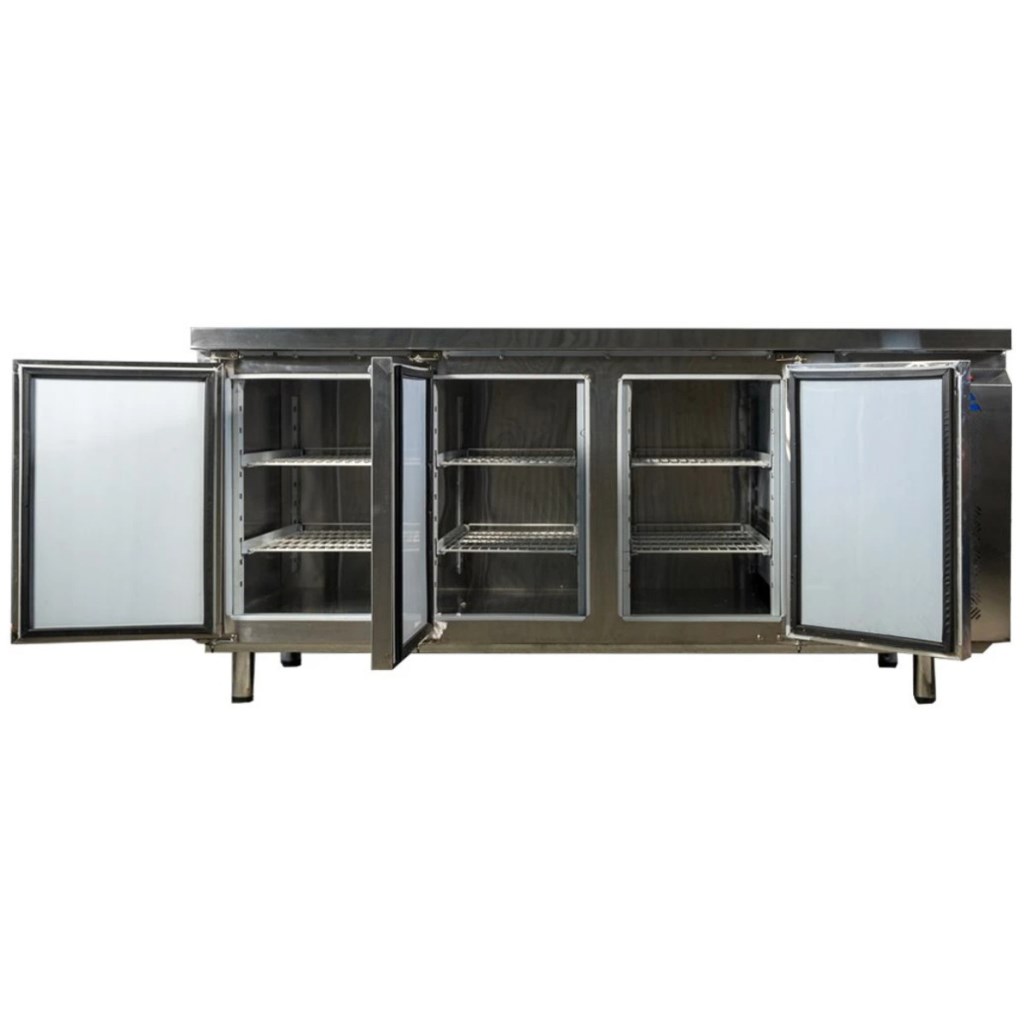 Каталог оборудования Холодильное оборудованиеСтолы охлаждаемыеСтолы морозильные низкотемпературныеСтол морозильный Ангара СХБ 1,835-600 Стол морозильный Ангара СХБ 1,835-600 Код товара: 066-371 Поделиться: WhatsAppTelegram СравнитьДобавить в КПВ избранное 0 142 600 ₽ В корзину 0 шт В наличииСамовывоз сегодня бесплатно Взять в кредит Купить в лизинг Получить консультацию в WhatsApp Описание Характеристики Отзывы 0 Стол морозильный Ангара СХБ 1,835-600 предназначен для заморозки и хранения продуктов на предприятиях общественного питания и торговли. Модель сочетает функциональность, надёжность и удобство эксплуатации, обеспечивая эффективную работу даже при интенсивной загрузке. Компактная конструкция позволяет рационально использовать рабочее пространство кухни. Особенности модели: Электронная панель управления — обеспечивает точный контроль и стабильную работу морозильной системы. Прочный корпус и столешница из нержавеющей стали — гарантируют долговечность, устойчивость к влаге и механическим воздействиям. Три дверцы и три полки размером 430×325 мм — позволяют удобно организовать внутреннее пространство и обеспечить быстрый доступ к замороженным продуктам. Регулируемые ножки — дают возможность адаптировать высоту стола под особенности рабочего места. Автоматические доводчики дверей с фиксацией — обеспечивают комфорт при работе и надёжное закрытие. Съёмные магнитные уплотнители — упрощают чистку и замену, сохраняя герметичность камеры и энергоэффективность. Морозильный стол Ангара СХБ 1,835-600 — это профессиональное оборудование, идеально подходящее для предприятий общественного питания, где требуется надёжное хранение замороженных продуктов. Благодаря прочной конструкции, современному управлению и продуманной эргономике модель обеспечивает стабильную работу и удобство в ежедневной эксплуатации.Изображение товара, представленного на фото, может отличаться от его фактического вида. Показать все Габаритные размеры1835×600×850 ммДиапазон рабочей температурыот -18 до -10 °CРасположение агрегатаБоковое Материал столешницыНержавеющая Тип столаС дверьми Тип двериГлухая Объём300 лКоличество дверей2 штКоличество полок2 штРазмер полки430×325 ммНапряжение220 ВМощность0,6 кВтТип охлажденияДинамическое Тип оттайкиАвтоматическая СтолешницаС бортом БрендАнгараВсе морозильные столы с бортом Оставить отзыв Еще никто не оставил отзыв на этот товар Ранее просмотрено В наличии 91 000 ₽ Витрина кондитерская Ангара Кондитер КУБ ЛЮКС 1,5