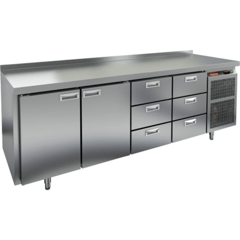 Каталог оборудования Холодильное оборудованиеСтолы охлаждаемыеСтолы морозильные низкотемпературныеСтол морозильный HiCold BN 1133/BT Стол морозильный HiCold BN 1133/BT Код товара: 062-077 Поделиться: WhatsAppTelegram СравнитьДобавить в КПВ избранное 0 297 351 ₽ В корзину 0 шт В наличииСамовывоз сегодня бесплатно Взять в кредит Купить в лизинг Получить консультацию в Max Описание Характеристики Отзывы 0 Инструкции 2 Стол морозильный HiCold BN 1133/BT предназначен для заморозки и хранения скоропортящихся продуктов и напитков на предприятиях общественного питания и торговли. Он сочетает в себе удобство использования и высокую эффективность. Управление осуществляется с помощью простой и понятной электронной панели. Конструкция корпуса и столешницы выполнена из прочной нержавеющей стали, что обеспечивает долговечность и гигиеничность оборудования. В комплект поставки входят 2 полки, что обеспечивает больше пространства для хранения продуктов различного ассортимента. Особенности: Автоматические доводчики дверей с фиксацией в открытом положении — для комфортной загрузки и выгрузки продуктов; Легкозаменяемые магнитные уплотнители — обеспечивают плотное закрытие дверей и снижают теплопотери; Регулируемые по высоте ножки — позволяют устанавливать стол на неровных поверхностях; Толщина столешницы — 50 мм; Толщина теплоизоляции — 50 мм — для сохранения стабильной температуры; Высота борта — 50 мм — предотвращает затекание жидкости и обеспечивает чистоту на рабочем месте. Морозильный стол HiCold BN 1133/BT — это надежное и практичное оборудование, обеспечивающее качественное хранение продуктов и удобство в ежедневной работе персонала кухни.Изображение товара, представленного на фото, может отличаться от его фактического вида. Показать все Габаритные размеры2280×500×850 ммДиапазон рабочей температурыот -18 до -10 °CРасположение агрегатаБоковое Материал столешницыНержавеющая Тип столаС дверьми и ящиками Тип двериГлухая Объём460 лКоличество дверей2 штКоличество полок2 штКоличество ящиков6 штРазмер полки330×325 ммНапряжение220 ВМощность0,75 кВтТип охлажденияДинамический Тип оттайкиАвтоматическая СтолешницаС бортом Вес нетто135 кгВес брутто155 кгБрендHicoldВсе морозильные столы HicoldВсе морозильные столы с бортом Оставить отзыв Еще никто не оставил отзыв на этот товар Паспорт на HICOLD BN 1133/BT.pdfДекларация о соответствии.pdf Ранее просмотрено Под заказ 450 266 ₽ Сплит-система холодильная среднетемпературная Север MGS 527 S (с ВПУ)