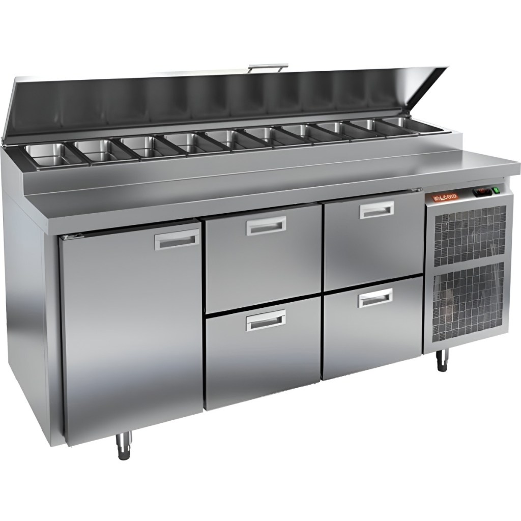 Каталог оборудования Холодильное оборудованиеСтолы охлаждаемыеСтолы холодильные для пиццыСтол холодильный для пиццы HiCold PZ1-122N (1/3) Стол холодильный для пиццы HiCold PZ1-122N (1/3) Код товара: 064-709 Поделиться: WhatsAppTelegram СравнитьДобавить в КПВ избранное 0 275 572 ₽ В корзину 0 шт Под заказСамовывоз сегодня бесплатно Взять в кредит Купить в лизинг Получить консультацию в WhatsApp Описание Характеристики Отзывы 0 Стол холодильный для пиццы HiCold PZ1-122GN (1/3) — профессиональное оборудование для предприятий общественного питания и торговли. Он сочетает рабочую поверхность для раскатки теста и подготовки ингредиентов с охлаждаемым блоком для кратковременного хранения скоропортящихся продуктов и напитков. Такое решение обеспечивает максимальное удобство — все необходимые компоненты всегда находятся под рукой. Корпус и столешница выполнены из нержавеющей стали, что гарантирует долговечность, устойчивость к повреждениям и лёгкость ухода. Основные особенности: Нержавеющая столешница и корпус — прочность, гигиеничность и лёгкость очистки Динамическая система охлаждения — равномерное распределение холода Автоматическая оттайка — стабильная работа без образования наледи Электронная панель управления — точная настройка температуры 1 дверца и 4 выдвижных ящика — удобная организация внутреннего пространства Автоматические доводчики дверцы и ящиков — комфорт при работе Легкозаменяемые магнитные уплотнители — поддержание герметичности Открытая агрегатная часть — лёгкий доступ для обслуживания Регулируемые по высоте ножки — установка на неровных поверхностях Максимальная глубина гастроёмкостей: 100 мм Глубина рабочей поверхности: 324 мм Толщина столешницы и теплоизоляции: 50 мм Вместимость салат-бара: до 10 гастроёмкостей Стол холодильный HiCold PZ1-122GN (1/3) — надёжный и функциональный холодильный стол для пиццы и салатов. Продуманная организация хранения и удобство эксплуатации обеспечивают быстрый доступ к ингредиентам и высокую производительность на профессиональной кухне.Изображение товара, представленного на фото, может отличаться от его фактического вида. Показать все Габаритные размеры1835×700×1000 ммДиапазон рабочей температурыот +2 до +10 °CРасположение агрегатаБоковое Материал столешницыНержавеющая Тип столаС дверьми и ящиками Тип двериГлухая Объём505 лТип гастроемкостейGN 1/3 Количество дверей1 штКоличество ящиков4 штРазмер полки530×325 ммНапряжение220 ВМощность0,5 кВтТип охлажденияДинамическое Тип оттайкиАвтоматическая Габариты в упаковке2000×850×1140 ммВес нетто172 кгВес брутто200 кгБрендHicoldВсе холодильные столы для пиццы HicoldВсе нержавеющие холодильные столы для пиццы Оставить отзыв Еще никто не оставил отзыв на этот товар Ранее просмотрено Под заказ 278 361 ₽ Стол холодильный для пиццы HiCold PZE1-222GN (1/3) Под заказ 434 242 ₽ Стол холодильный для пиццы HiCold PZ2-3333GN (1/6) Под заказ 244 971 ₽ Стол холодильный для пиццы HiCold PZ2-211/GN (1/6H) Под заказ 311 842 ₽ Стол холодильный для пиццы HiCold PZ1-1122/GN (1/3H) Под заказ 342 622 ₽ Стол холодильный для пиццы HiCold PZE1-2222GN (1/3) Под заказ 206 541 ₽ Стол холодильный для пиццы HiCold PZ1-11GN (1/3) М
