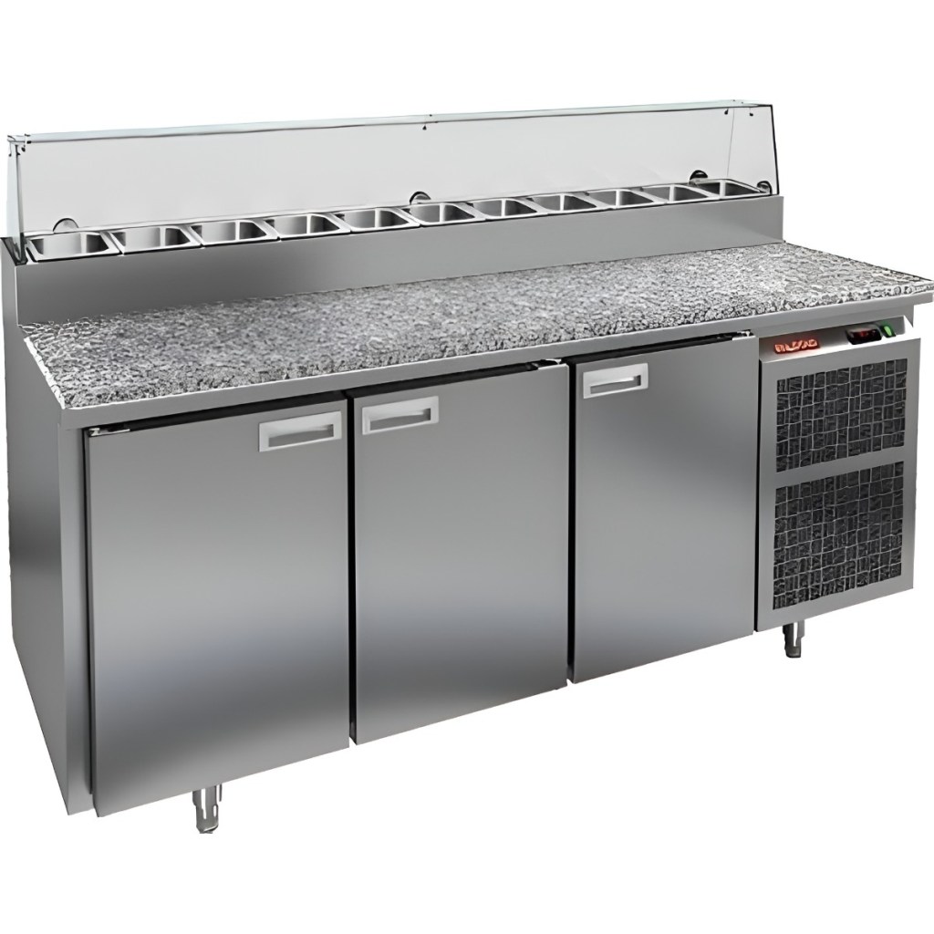 Каталог оборудования Холодильное оборудованиеСтолы охлаждаемыеСтолы холодильные для пиццыСтол холодильный для пиццы HiCold PZ2-111GN (1/6) камень со стеклом Стол холодильный для пиццы HiCold PZ2-111GN (1/6) камень со стеклом Код товара: 064-742 Поделиться: WhatsAppTelegram СравнитьДобавить в КПВ избранное 0 256 672 ₽ В корзину 0 шт Под заказСамовывоз сегодня бесплатно Взять в кредит Купить в лизинг Получить консультацию в Max Описание Характеристики Отзывы 0 Инструкции 2 Стол холодильный для пиццы HiCold PZ2-111GN (1/6) камень со стеклом предназначен для предприятий общественного питания и торговли. Он совмещает рабочую поверхность для раскатки теста и подготовки ингредиентов с охлаждаемым блоком для кратковременного хранения скоропортящихся продуктов и напитков. Стеклянный купол защищает ингредиенты от внешних воздействий и обеспечивает их наглядную демонстрацию, что особенно удобно при использовании в салат-барах. Корпус выполнен из нержавеющей стали, а рабочая столешница — из гранита, что обеспечивает долговечность, прочность и удобство работы с продуктами. Основные особенности: Гранитная столешница и корпус из нержавеющей стали — прочность, долговечность и лёгкость ухода Стеклянный купол — защита ингредиентов и визуальная демонстрация продуктов Динамическая система охлаждения — равномерное распределение холода по всему объёму Автоматическая оттайка — стабильная работа без наледи Электронная панель управления — точная настройка температуры 3 вместительные внутренние полки формата GN 1/1 (размер 530×325 мм) — удобное хранение ингредиентов Автоматические доводчики дверей с фиксатором открытого положения — комфортная эксплуатация Легкозаменяемые магнитные уплотнители — поддержание герметичности Открытая агрегатная часть — лёгкий доступ к техническим элементам Регулируемые по высоте ножки — установка на неровных поверхностях Максимальная глубина гастроёмкостей: 100 мм Глубина рабочей поверхности: 486 мм Толщина столешницы: 50 мм Толщина теплоизоляции: 50 мм Вместимость салат-бара: до 11 гастроёмкостей Стол холодильный HiCold PZ2-111GN (1/6) камень со стеклом— надёжный и функциональный стол для пиццы и салатов. Гранитная рабочая поверхность повышает прочность и долговечность оборудования, а стеклянный купол обеспечивает защиту и наглядное представление ингредиентов. Стол обеспечивает удобство работы и быстрый доступ к продуктам, делая его оптимальным решением для профессиональных кухонь и предприятий общественного питания. Изображение товара, представленного на фото, может отличаться от его фактического вида. Показать все Габаритные размеры1835×700×1000 ммДиапазон рабочей температурыот +2 до +10 °CРасположение агрегатаБоковое Материал столешницыГранитная Тип столаС дверьми Тип двериГлухая Объём505 лТип гастроемкостейGN 1/6 Количество дверей3 штРазмер полки530×325 ммНапряжение220 ВМощность0,46 кВтТип охлажденияДинамическое Тип оттайкиАвтоматическая Габариты в упаковке2000×850×1080 ммВес нетто172 кгВес брутто248 кгБрендHicoldВсе холодильные столы для пиццы Hicold Оставить отзыв Еще никто не оставил отзыв на этот товар Паспорт на HICOLD PZ2-111GN.pdfДекларация о соответствии.pdf Ранее просмотрено Под заказ 157 492 ₽ Стол холодильный среднетемпературный HiCold GNE 12/TN М без столешницы Под заказ 171 102 ₽ Стол холодильный для салатов HiCold SL1-111GN (1/3) В наличии 40 953 ₽ Дверной блок с распашной дв