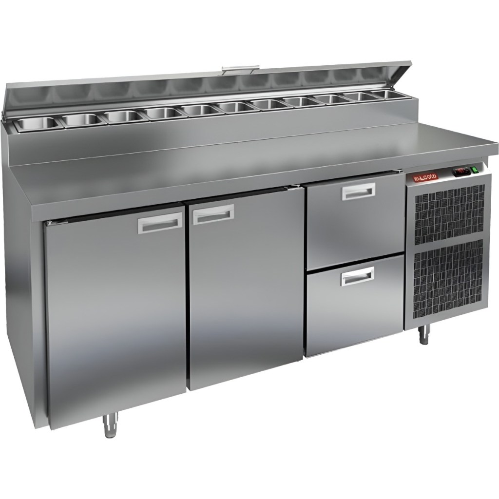 Каталог оборудования Холодильное оборудованиеСтолы охлаждаемыеСтолы холодильные для пиццыСтол холодильный для пиццы HiCold PZ2-112GN (1/6) Стол холодильный для пиццы HiCold PZ2-112GN (1/6) Код товара: 064-752 Поделиться: WhatsAppTelegram СравнитьДобавить в КПВ избранное 0 244 971 ₽ В корзину 0 шт Под заказСамовывоз сегодня бесплатно Взять в кредит Купить в лизинг Получить консультацию в WhatsApp Описание Характеристики Отзывы 0 Стол холодильный для пиццы HiCold PZ2-112GN (1/6) предназначен для кухонь и предприятий общественного питания. Он используется для раскатки теста, подготовки ингредиентов для пиццы, салатов и других блюд, а также для охлаждения и кратковременного хранения скоропортящихся продуктов. Модель совмещает нержавеющую рабочую поверхность и охлаждаемый отсек с 2 дверями и 2 ящиками, обеспечивая удобный доступ к ингредиентам и эффективное хранение. Особенности: Динамическая система охлаждения для равномерного поддержания температуры Автоматическая оттайка для удобного обслуживания Электронная панель управления для точной настройки параметров Вместительная внутренняя полка формата GN 1/1 (размер 530×325 мм) 2 двери и 2 вместительных ящика для хранения ингредиентов Автоматические доводчики дверей с фиксатором открытого положения Легкозаменяемые магнитные уплотнители для герметичности Открытая агрегатная часть для легкого доступа к компонентам Регулируемые по высоте ножки для устойчивости Нержавеющая столешница глубиной 486 мм и толщиной 50 мм — устойчива к коррозии, легко моется и гигиенична Толщина теплоизоляции: 50 мм Максимальная глубина гастроемкостей: 100 мм Вместимость салат-бара: 11 гастроемкости Стол холодильный HiCold PZ2-112GN (1/6) — это надежный и функциональный стол для пиццы. Он объединяет рабочую поверхность и охлаждаемый отсек, упрощает хранение и подготовку ингредиентов, обеспечивает удобство работы повара и соответствует стандартам профессиональной кухни. Изображение товара, представленного на фото, может отличаться от его фактического вида. Показать все Габаритные размеры1835×700×1000 ммДиапазон рабочей температурыот +2 до +10 °CРасположение агрегатаБоковое Материал столешницыНержавеющая Тип столаС дверьми и ящиками Тип двериГлухая Объём505 лТип гастроемкостейGN 1/6 Количество дверей2 штКоличество ящиков2 штРазмер полки530×325 ммНапряжение220 ВМощность0,5 кВтТип охлажденияДинамическое Тип оттайкиАвтоматическая Габариты в упаковке2000×850×1140 ммВес нетто172 кгВес брутто210 кгБрендHicoldВсе холодильные столы для пиццы HicoldВсе нержавеющие холодильные столы для пиццы Оставить отзыв Еще никто не оставил отзыв на этот товар Ранее просмотрено Под заказ 245 242 ₽ Стол холодильный для пиццы HiCold PZ2-22GN (1/6)