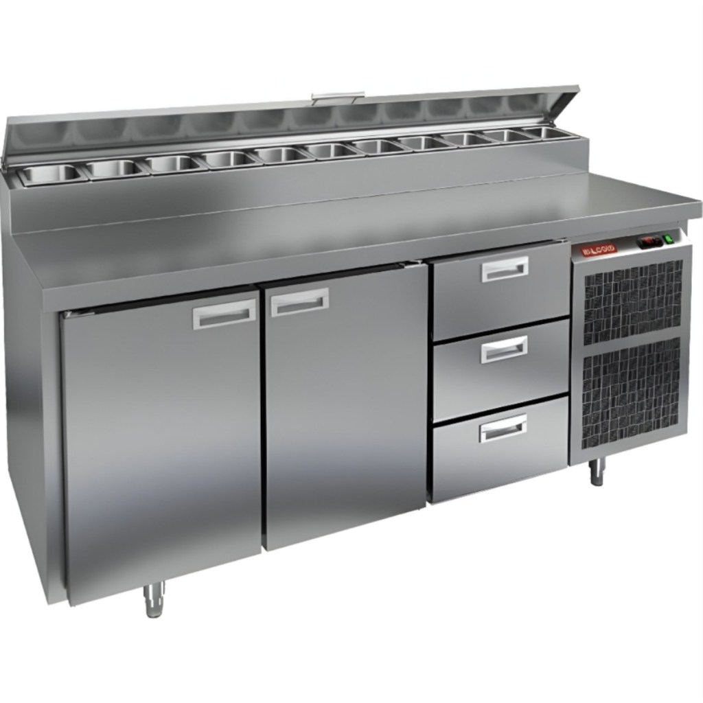 Каталог оборудования Холодильное оборудованиеСтолы охлаждаемыеСтолы холодильные для пиццыСтол холодильный для пиццы HiCold PZ2-113GN (1/6) Стол холодильный для пиццы HiCold PZ2-113GN (1/6) Код товара: 064-761 Поделиться: WhatsAppTelegram СравнитьДобавить в КПВ избранное 0 260 272 ₽ В корзину 0 шт Под заказСамовывоз сегодня бесплатно Взять в кредит Купить в лизинг Получить консультацию в WhatsApp Описание Характеристики Отзывы 0 Инструкции 2 Стол холодильный для пиццы HiCold PZ2-113GN (1/6) предназначен для кухонь и предприятий общественного питания. Он используется для раскатки теста, подготовки ингредиентов для пиццы, салатов и других блюд, а также для охлаждения и кратковременного хранения скоропортящихся продуктов. Модель совмещает нержавеющую рабочую поверхность и охлаждаемый отсек с 2 дверьми и 3 ящиками, обеспечивая удобный доступ к ингредиентам и эффективное хранение. Особенности: Динамическая система охлаждения для равномерного поддержания температуры Автоматическая оттайка для удобного обслуживания Электронная панель управления для точной настройки параметров Вместительная внутренняя полка формата GN 1/1 (размер 530×325 мм) 2 двери и 3 вместительных ящика для хранения ингредиентов Автоматические доводчики дверей с фиксатором открытого положения Легкозаменяемые магнитные уплотнители для герметичности Открытая агрегатная часть для легкого доступа к компонентам Регулируемые по высоте ножки для устойчивости Нержавеющая столешница глубиной 486 мм и толщиной 50 мм — устойчива к коррозии, легко моется и гигиенична Толщина теплоизоляции: 50 мм Максимальная глубина гастроемкостей: 100 мм Вместимость салат-бара: 11 гастроемкости Стол холодильный HiCold PZ2-113GN (1/6) — это надежный и функциональный стол для пиццы. Он объединяет рабочую поверхность и охлаждаемый отсек, упрощает хранение и подготовку ингредиентов, обеспечивает удобство работы повара и соответствует стандартам профессиональной кухни. Изображение товара, представленного на фото, может отличаться от его фактического вида. Показать все Габаритные размеры1835×700×1000 ммДиапазон рабочей температурыот +2 до +10 °CРасположение агрегатаБоковое Материал столешницыНержавеющая Тип столаС дверьми и ящиками Тип двериГлухая Объём505 лТип гастроемкостейGN 1/6 Количество дверей2 штКоличество ящиков3 штРазмер полки530×325 ммНапряжение220 ВМощность0,46 кВтТип охлажденияДинамическое Тип оттайкиАвтоматическая Вес нетто172 кгВес брутто210 кгБрендHicoldВсе холодильные столы для пиццы HicoldВсе нержавеющие холодильные столы для пиццы Оставить отзыв Еще никто не оставил отзыв на этот товар Паспорт на HICOLD PZ2-113GN.pdfДекларация о соответствии.pdf Ранее просмотрено Под заказ 147 321 ₽ Стол холодильный для пиццы HiCold PZ1-1GN (1/3) В наличии 250 642 ₽ Стол холодильный для пиццы HiCold PZ2-1111GN (1/6) Под заказ 260 542 ₽ Стол холодильный для пиццы HiCold PZ1-23GN (1/3)