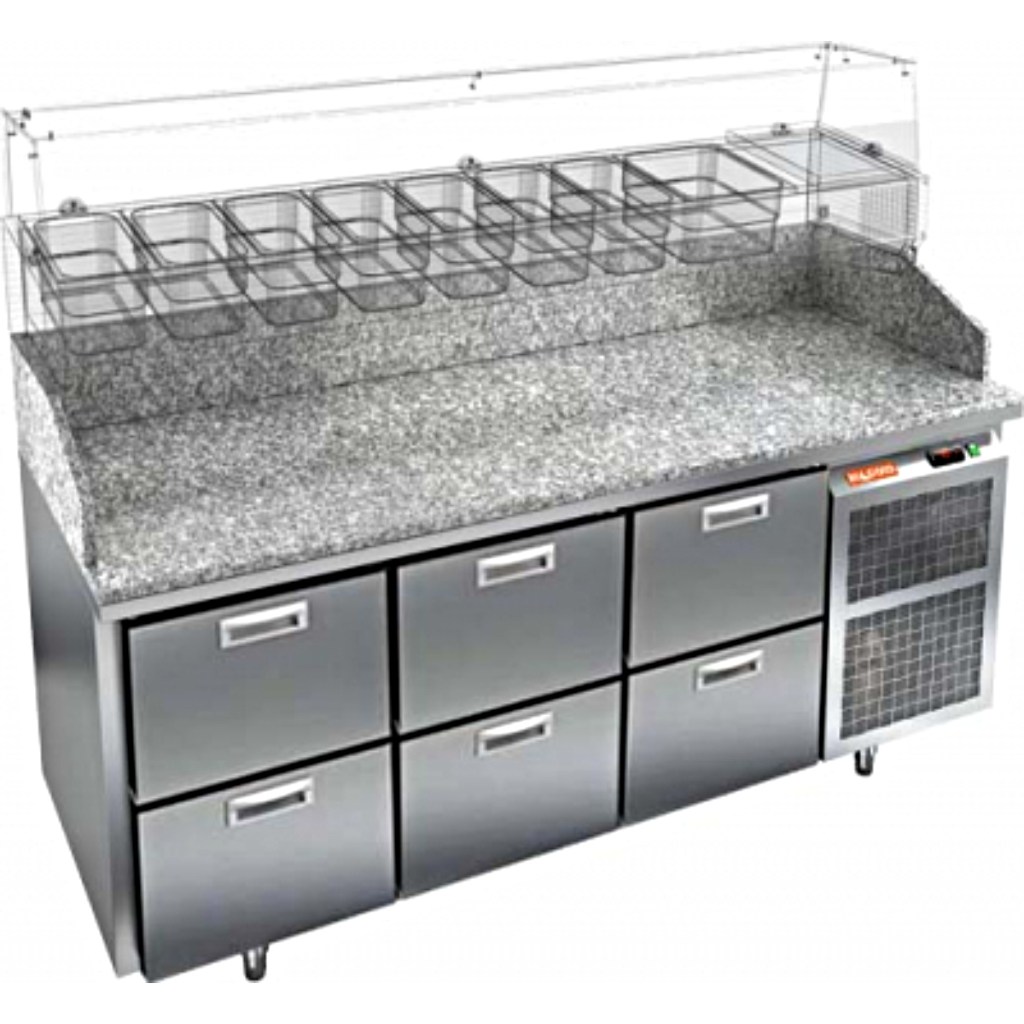 Каталог оборудования Холодильное оборудованиеСтолы охлаждаемыеСтолы холодильные для пиццыСтол холодильный для пиццы HiCold PZ3-222/GN камень Стол холодильный для пиццы HiCold PZ3-222/GN камень Код товара: 065-011 Поделиться: WhatsAppTelegram СравнитьДобавить в КПВ избранное 0 358 552 ₽ В корзину 0 шт Под заказСамовывоз сегодня бесплатно Взять в кредит Купить в лизинг Получить консультацию в Max Описание Характеристики Отзывы 0 Стол холодильный для пиццы HiCold PZ3-222/GN камень предназначен для использования в пиццериях, кафе, магазинах и ресторанах. Он идеально подходит для раскатки теста, подготовки ингредиентов и кратковременного хранения скоропортящихся продуктов. Витрина приобретается отдельно. Стол сочетает корпус из нержавеющей стали и гранитную столешницу, которая устойчива к механическим и температурным нагрузкам и удобна в работе с тестом. Такая конструкция обеспечивает долговечность, гигиеничность и простоту ухода. Особенности модели: Охлаждение: динамическое — равномерное поддержание температуры Оттайка: автоматическая — удобство и экономия времени Панель управления: электронная — точная настройка температуры Ножки: регулируемые по высоте — устойчивость на неровной поверхности Ящики: 6 выдвижных ящика — удобное хранение ингредиентов Уплотнители: легкозаменяемые магнитные — герметичность и простота обслуживания Толщина теплоизоляции: 50 мм — сохранение холода и энергоэффективность Рабочая поверхность: глубина 680 мм — удобство работы HiCold PZE3-222/GN камень— это надёжный и функциональный холодильный стол для пиццы, который сочетает прочность, эргономику и эффективное охлаждение. Благодаря гранитной столешнице, корпусу из нержавеющей стали, двум глухим дверям и двум выдвижным ящикам он станет универсальным решением для профессиональной кухни. Изображение товара, представленного на фото, может отличаться от его фактического вида. Показать все Габаритные размеры1835×700×1050 ммДиапазон рабочей температурыот +2 до +10 °CРасположение агрегатаБоковое Материал столешницыГранитная Тип столаС ящиками Объём505 лКоличество ящиков6 штРазмер полки530×325 ммНапряжение220 ВМощность0,5 кВтТип охлажденияДинамическое Тип оттайкиАвтоматическая Габариты в упаковке2000×850×1180 ммВес нетто172 кгВес брутто192 кгБрендHicoldВсе холодильные столы для пиццы HicoldВсе нержавеющие холодильные столы для пиццы Оставить отзыв Еще никто не оставил отзыв на этот товар Ранее просмотрено Под заказ 290 061 ₽ Стол холодильный для пиццы HiCold PZ2-1111GN (1/6) камень