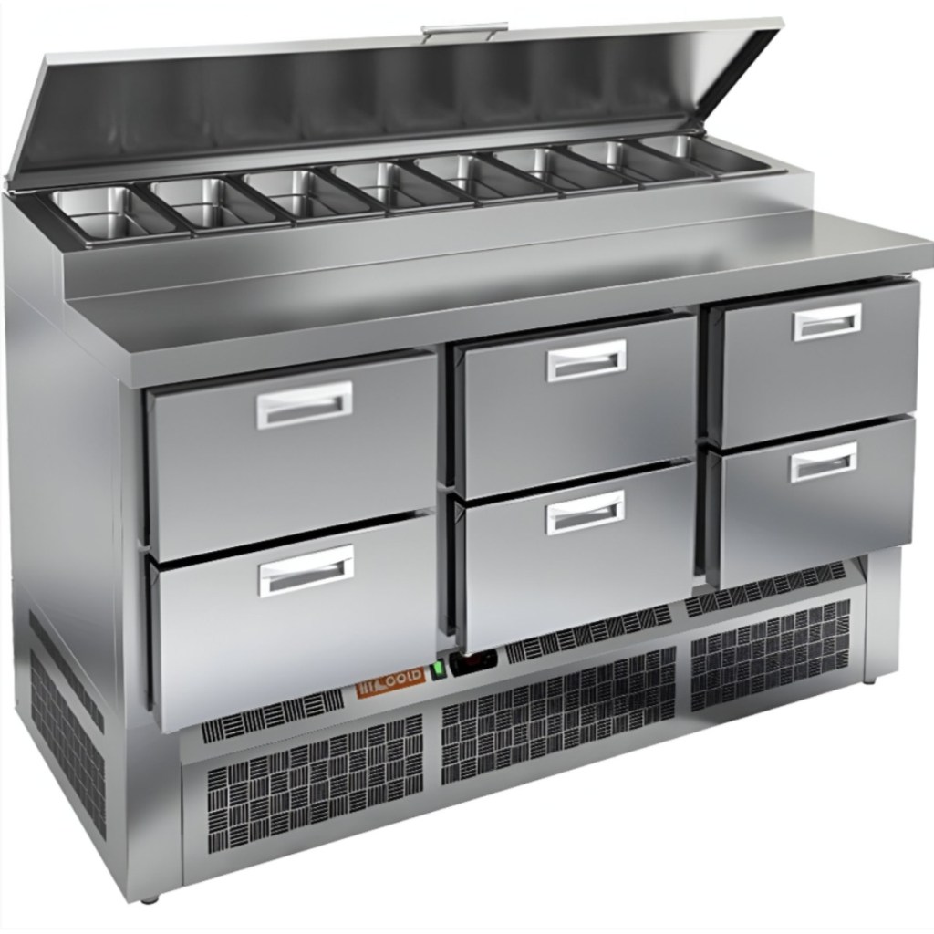Каталог оборудования Холодильное оборудованиеСтолы охлаждаемыеСтолы холодильные для пиццыСтол холодильный для пиццы HiCold PZE1-222GN (1/3) Стол холодильный для пиццы HiCold PZE1-222GN (1/3) Код товара: 064-727 Поделиться: WhatsAppTelegram СравнитьДобавить в КПВ избранное 0 278 361 ₽ В корзину 0 шт Под заказСамовывоз сегодня бесплатно Взять в кредит Купить в лизинг Получить консультацию в WhatsApp Описание Характеристики Отзывы 0 Стол холодильный для пиццы HiCold PZE1-222GN (1/3) — профессиональное оборудование для предприятий общественного питания и торговли. Он предназначен для раскатки теста и подготовки ингредиентов, используемых при приготовлении пиццы, салатов и других блюд, а также для охлаждения и кратковременного хранения скоропортящихся продуктов и напитков. Совмещение рабочей поверхности и охлаждаемого блока значительно упрощает работу повара — все необходимые компоненты находятся под рукой. Корпус и столешница выполнены из нержавеющей стали, обеспечивая долговечность, устойчивость к повреждениям и лёгкость ухода. Основные особенности: Динамическая система охлаждения — равномерное распределение холода по всему объёму Автоматическая оттайка — стабильная работа без образования наледи Электронная панель управления — точная настройка температуры 6 выдвижных ящика — удобная организация внутреннего пространства Автоматические доводчики ящиков — комфорт при работе Легкозаменяемые магнитные уплотнители — поддержание герметичности Открытая агрегатная часть — лёгкий доступ к техническим элементам Регулируемые по высоте ножки — установка на неровных поверхностях Максимальная глубина гастроёмкостей: 100 мм Глубина рабочей поверхности: 324 мм Толщина столешницы: 50 мм Толщина теплоизоляции: 50 мм Вместимость салат-бара: до 8 гастроёмкостей HiCold PZE1-222GN (1/3) с четырьмя выдвижными ящиками — надёжный и функциональный холодильный стол для пиццы и салатов. Продуманная организация хранения и удобство эксплуатации обеспечивают быстрый доступ к ингредиентам и повышают производительность на профессиональной кухне.Изображение товара, представленного на фото, может отличаться от его фактического вида. Показать все Габаритные размеры1485×700×990 ммДиапазон рабочей температурыот +2 до +10 °CРасположение агрегатаНижнее Материал столешницыНержавеющая Тип столаС ящиками Объём375 лТип гастроемкостейGN 1/3 Количество ящиков6 штНапряжение220 ВМощность0,22 кВтТип охлажденияДинамическое Тип оттайкиАвтоматическая Габариты в упаковке1680×840×1170 ммВес нетто115 кгВес брутто153 кгБрендHicoldВсе холодильные столы для пиццы HicoldВсе нержавеющие холодильные столы для пиццы Оставить отзыв Еще никто не оставил отзыв на этот товар Ранее просмотрено Под заказ 434 242 ₽ Стол холодильный для пиццы HiCold PZ2-3333GN (1/6) Под заказ 244 971 ₽ Стол холодильный для пиццы HiCold PZ2-211/GN (1/6H) Под заказ 311 842 ₽ Стол холодильный для пиццы HiCold PZ1-1122/GN (1/3H) Под заказ 342 622 ₽ Стол холодильный для пиццы HiCold PZE1-2222GN (1/3) Под заказ 206 541 ₽ Стол холодильный для пиццы HiCold PZ1-11GN (1/3) М