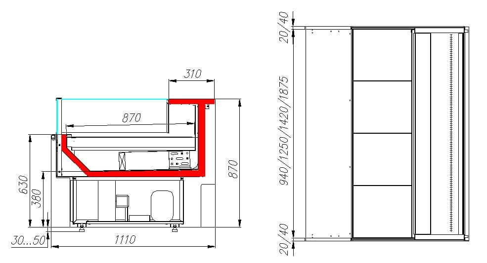 Отдельностоящее использование возможно только с боковинами (приобретаются отдельно). Для линейной установки нескольких витрин с одинаковым температурным режимом достаточно двух боковин на всю линию. Передняя панель может быть изготовлена из окрашенной или нержавеющей стали либо МДФ.