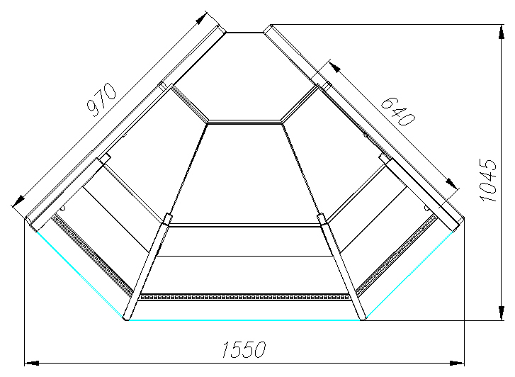 • Внешний угол 90° — оптимальное расположение в торговом зале.