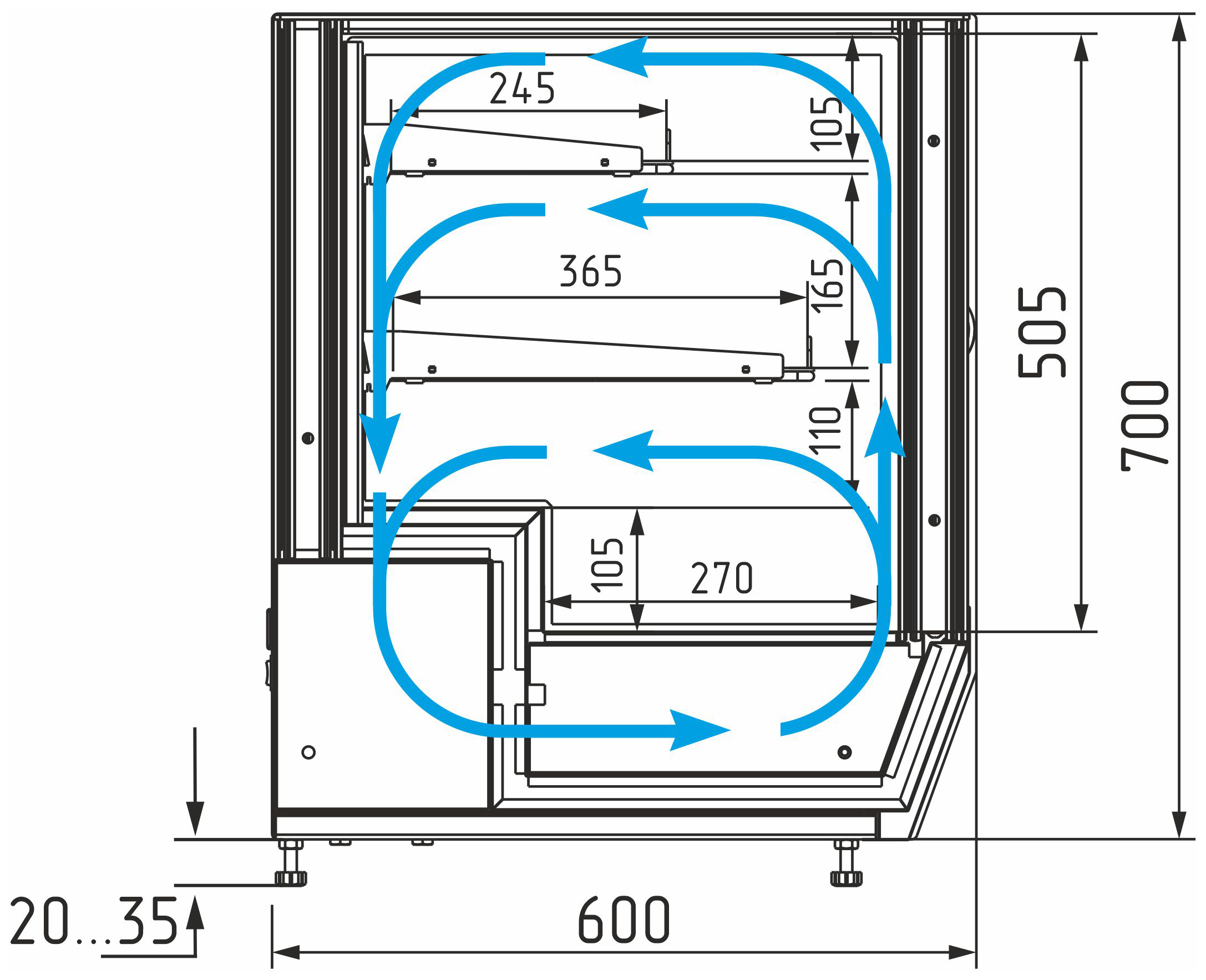 Каталог оборудования Холодильное оборудованиеВитрины настольныеВитрина холодильная настольная Carboma AC59 VM 1,2-1 (слайдер) (0430) Витрина холодильная настольная Carboma AC59 VM 1,2-1 (слайдер) (0430) Код товара: 063-689 Поделиться: WhatsAppTelegram СравнитьДобавить в КПВ избранное 0 139 770 ₽ В корзину 0 шт Под заказСамовывоз сегодня бесплатно Взять в кредит Купить в лизинг Получить консультацию в WhatsApp Описание Характеристики Отзывы 0 Инструкции 2 Витрина холодильная настольная Carboma AC59 VM 1,2-1 (слайдер) (0430) — это универсальная охлаждаемая витрина для демонстрации и кратковременного хранения кондитерских изделий, десертов, салатов и напитков. Идеально подходит для небольших кафе, баров и заведений общественного питания. Модель оснащена закалёнными боковыми стеклопакетами, раздвижными фронтальными и задними дверцами, а также двумя охлаждаемыми полками-решётками с ограничителями. Может устанавливаться на столешницу или встраиваться в барную стойку. Корпус выполнен из стали с ППУ-теплоизоляцией, а рабочая поверхность — из нержавеющей стали. Ключевые особенности: Динамическая система охлаждения — равномерное распределение температуры Компрессор европейского производства — высокая надёжность Электронный блок управления Carel — точный контроль температурного режима Выпариватель конденсата — исключает необходимость ручного слива Возможность установки полок под углом 5° — улучшенная презентация Фронтальные и задние раздвижные дверцы — удобный доступ с обеих сторон Боковая LED-подсветка — подчёркивает структуру десертов и изделий Современный кубический дизайн — стильный внешний вид Регулируемые ножки-опоры — устойчивость на любых поверхностях Настольное или встраиваемое размещение — гибкость установки Стабильный температурный режим — для безопасного хранения продуктов Глубина нижней зоны выкладки: 270 мм Глубина полок: 365 мм (верхняя) / 245 мм (нижняя) Длина нижнего поддона: 1166 мм Максимальная высота выкладки продуктов: нижний поддон — 150 мм, полки — 100 мм Максимальная нагрузка на полку: верхняя — 14 кг, нижняя — 21 кг. Температура окружающей среды: от 12 до 25 °C Относительная влажность воздуха: до 60% Carboma AC59 VM 1,2-1 (слайдер) (0430) — это надёжная и эргономичная охлаждаемая витрина с удобным доступом с обеих сторон, которая обеспечит качественную демонстрацию и сохранность продукции в кафе, барах и точках продаж.Изображение товара, представленного на фото, может отличаться от его фактического вида. Показать все Габаритные размеры1200×600×735 ммДиапазон рабочей температурыот +4 до +10 °CДлина1200 ммГлубина600 ммВысота735 ммРазмещениеГоризонтальная Площадь выкладки1,0 м²Полезный объем витрины0,12 м³Тип охлажденияДинамическое Климатический класс3 ХладагентR290, R600a Напряжение220 ВЭнергопотребление в сутки0,5 кВтКоличество полок2 штГабариты в упаковке1350×750×890 ммВес нетто107 кгВес брутто118 кгБрендПолюсВсе витрины настольные CarbomaВсе холодильные настольные витриныВсе стеклянные настольные витрины Оставить отзыв Еще никто не оставил отзыв на этот товар Брошюра на Carboma AMRA AC59 VM.pdfСхема Carboma AMRA AC59 VM 1,2-1 Slider.jpg Похожие товары Перейти в каталог Под заказ 205 283 ₽ Витрина кондитерская Chilz VETE OFT 130 белый глянец, шлифованная нержавейка В наличии 126 370 ₽ Витрина кондитерская МХМ Veneto VS-1,3 крашенная Под заказ 161 500 ₽ Витрина кондитерская Carboma KR70 VM 0,6-2 Standard (9005-0109) открытая горка Под заказ 173 600 ₽ Вит